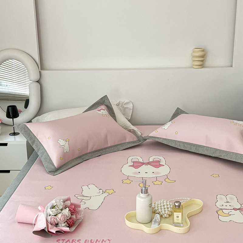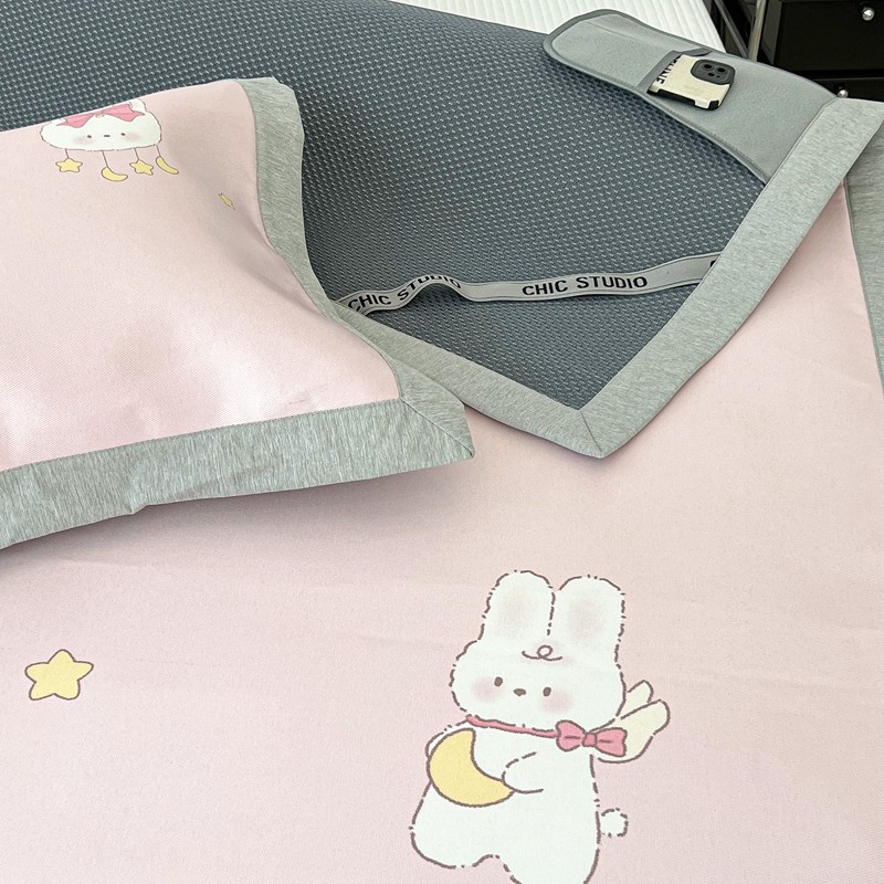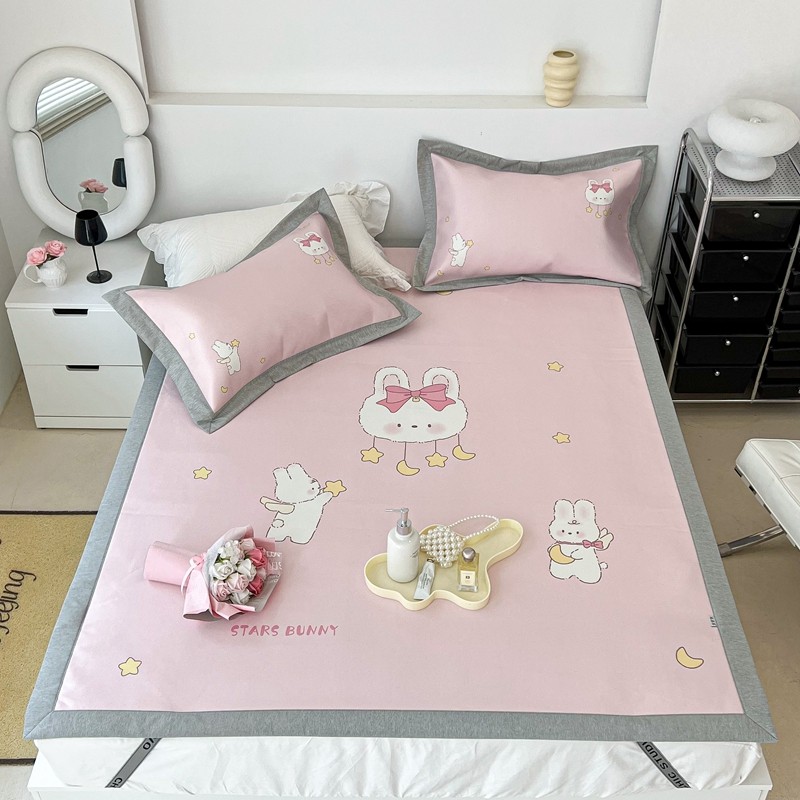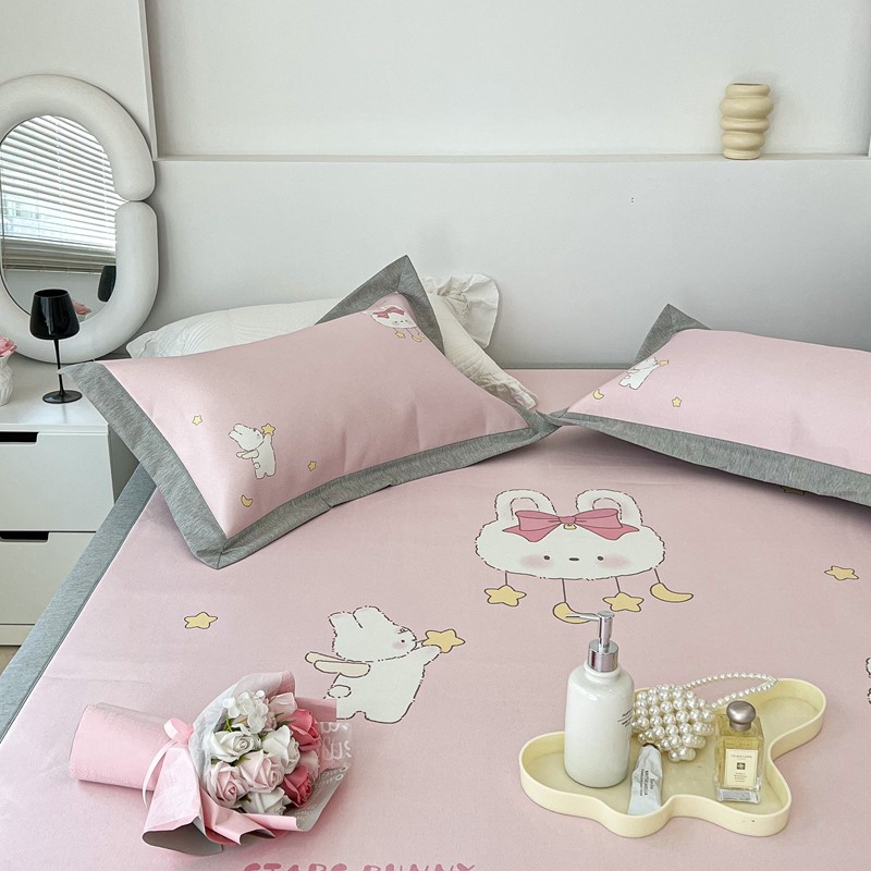 昔可 2022新款大版数码水洗冰沐丝凉席 星星兔子