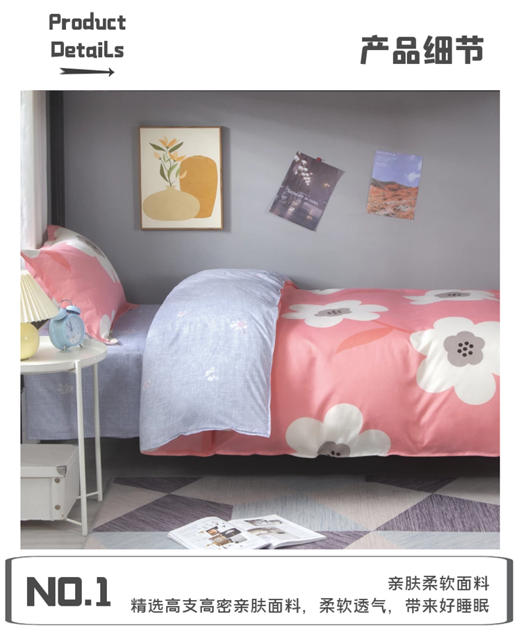 商品名称:曼璐2025芦荟棉学生寝室架子床套件宿舍1.5 春暖花开-粉