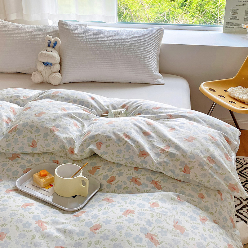 (总)田野2021小清新全棉四件套纯棉碎花田园风三件套,菲菲兔,芬芳-绿,花期,萝拉,莎拉,恬爱,仙草,樱花草-蓝