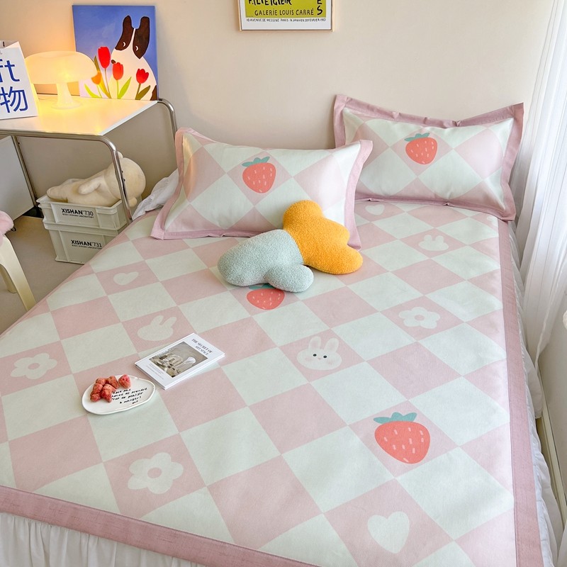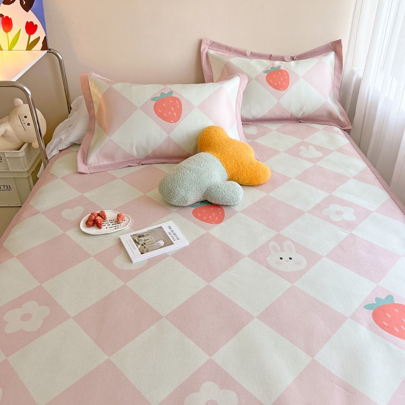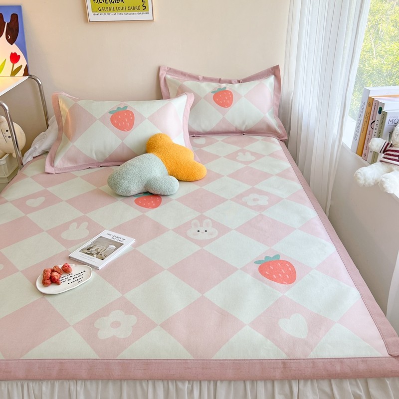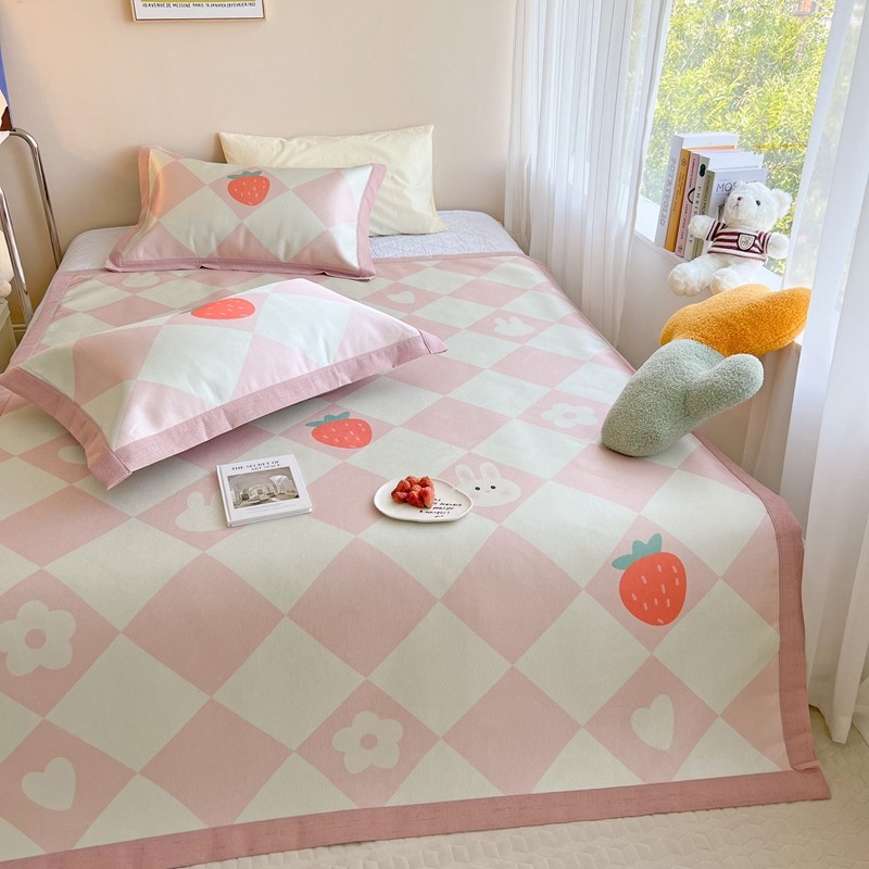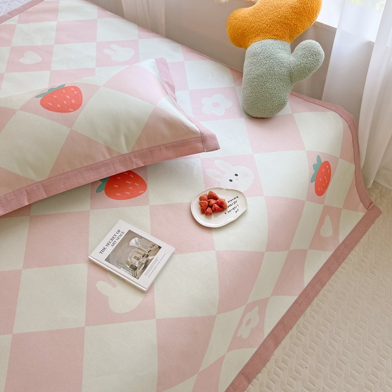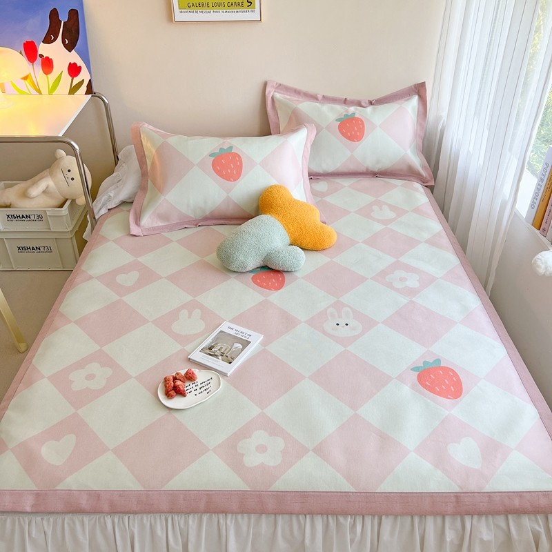 时年 2022新款全工艺环保数码印花高品质水洗冰丝凉席 草莓兔