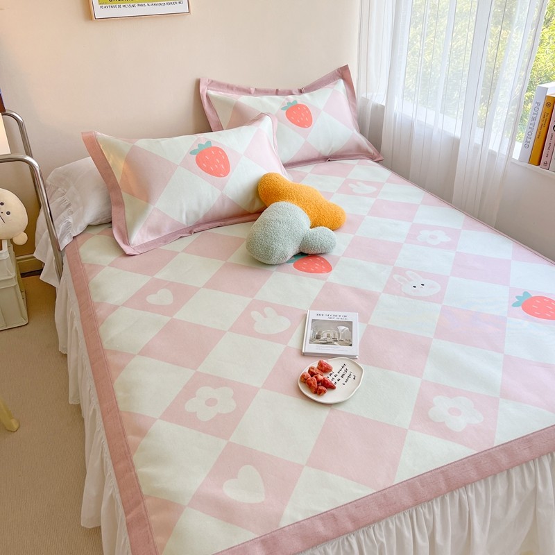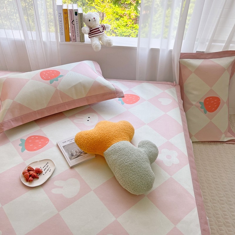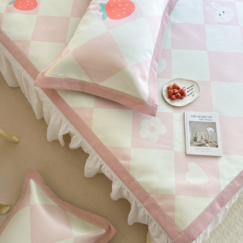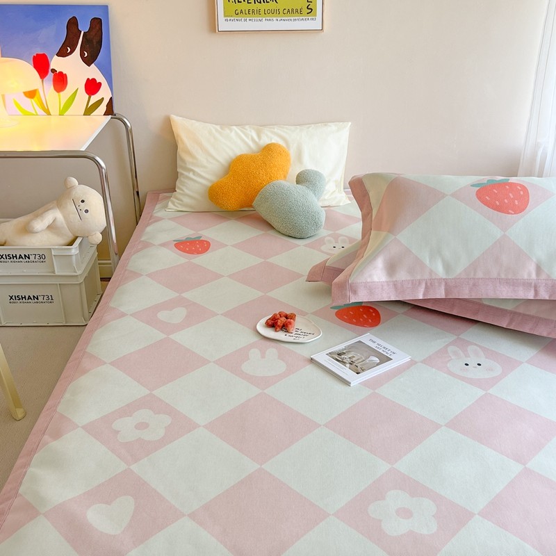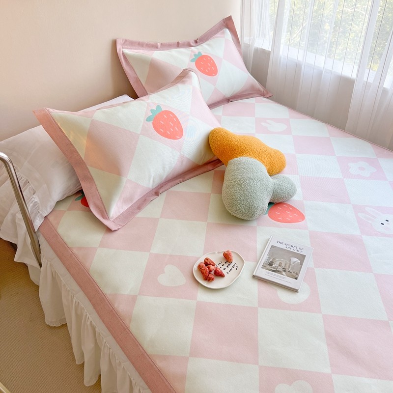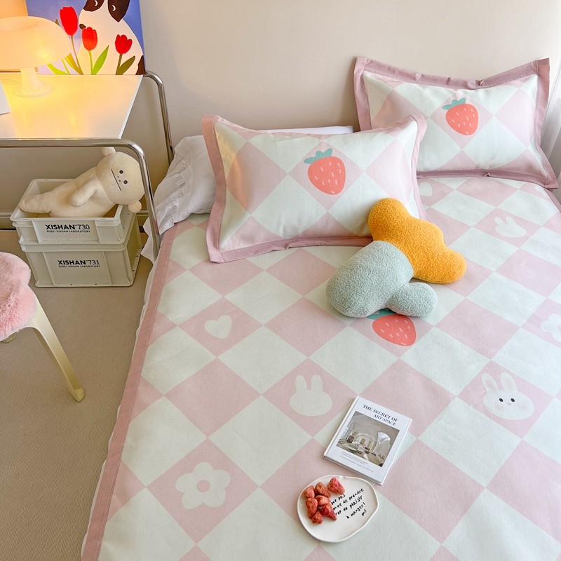 时年 2022新款全工艺环保数码印花高品质水洗冰丝凉席 草莓兔