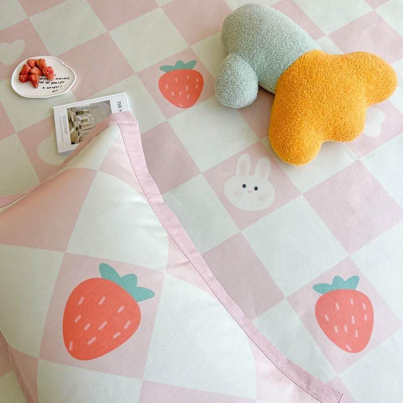 商品名称:时年 2022新款全工艺环保数码印花高品质水洗冰丝凉席 草莓兔