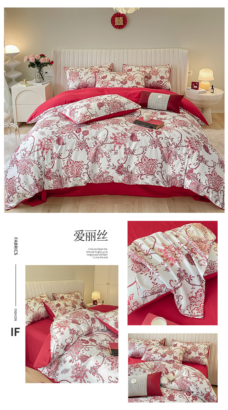 用心 2022新款数码印花婚庆四件套,爱丽丝