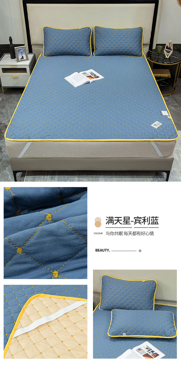 (总)冬然2023新款A类纯棉床笠夹棉防滑床垫保护垫直播爆款,满天星宾利蓝,满天星豆沙粉,满天星石墨灰,满天星银灰,满天星本白