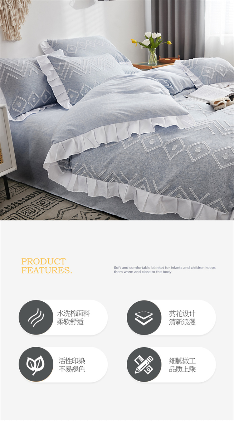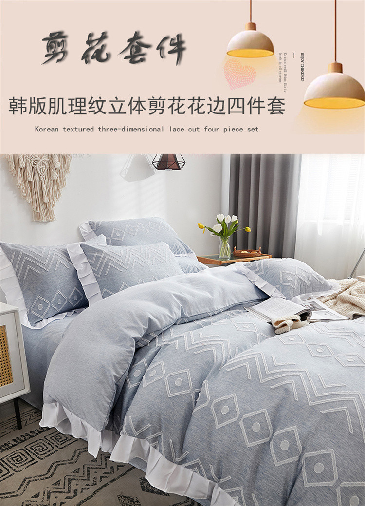 商品名称:啊雅家居2025新款韩版肌理纹立体剪花花边四件套 肌理蓝
