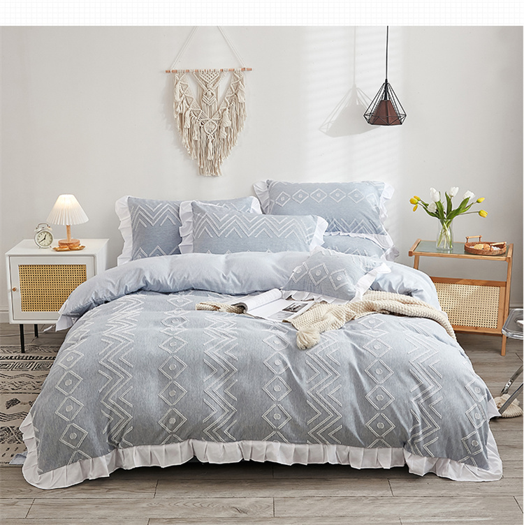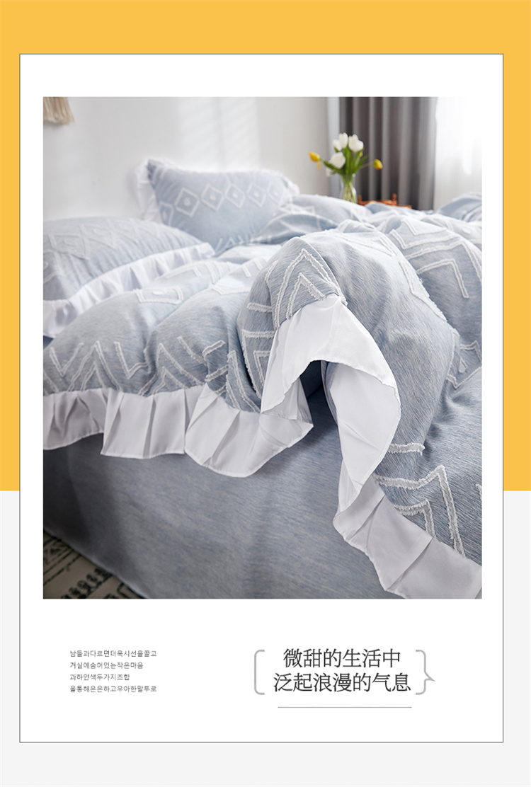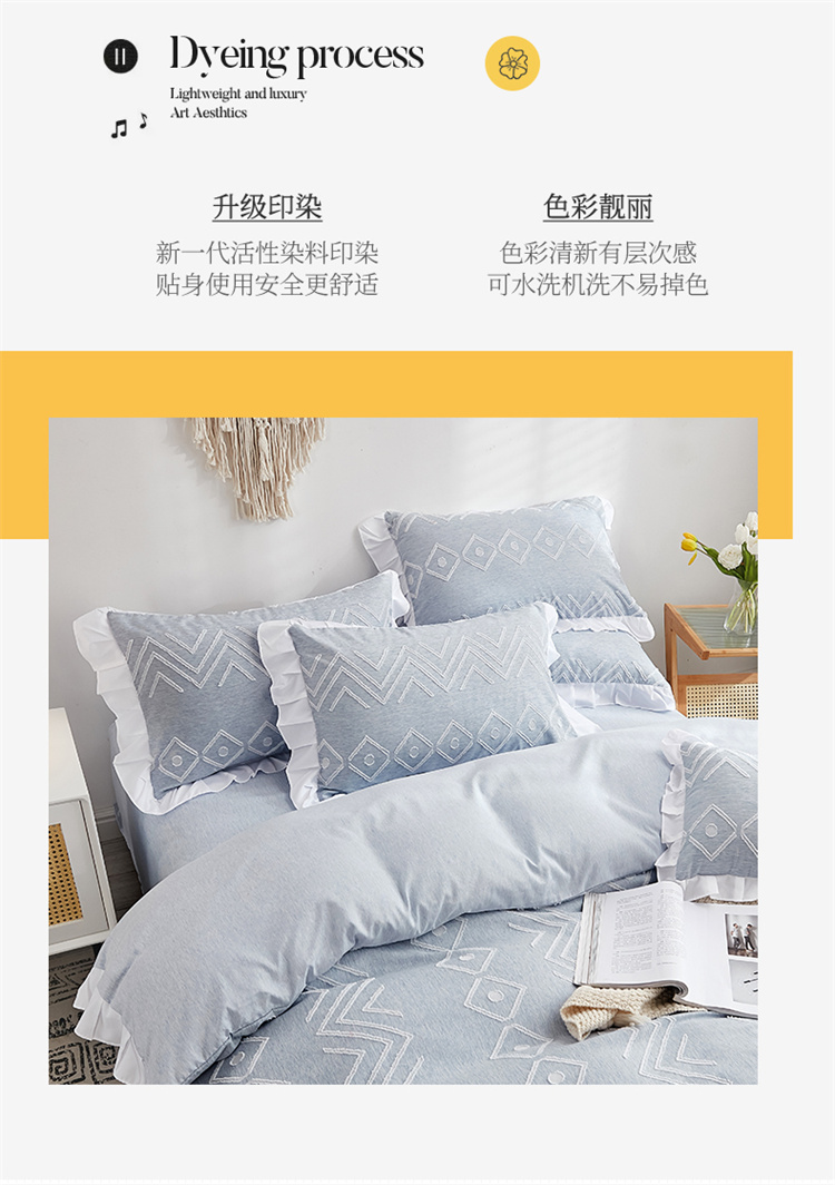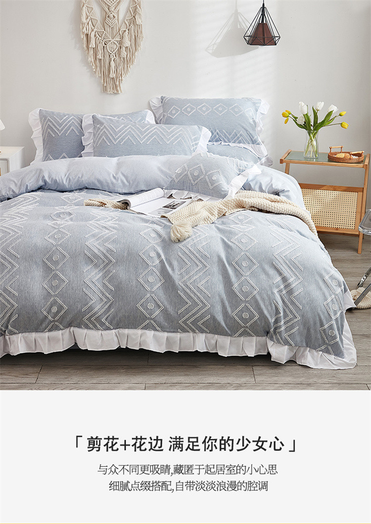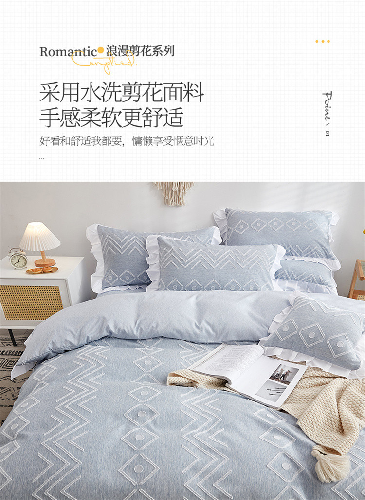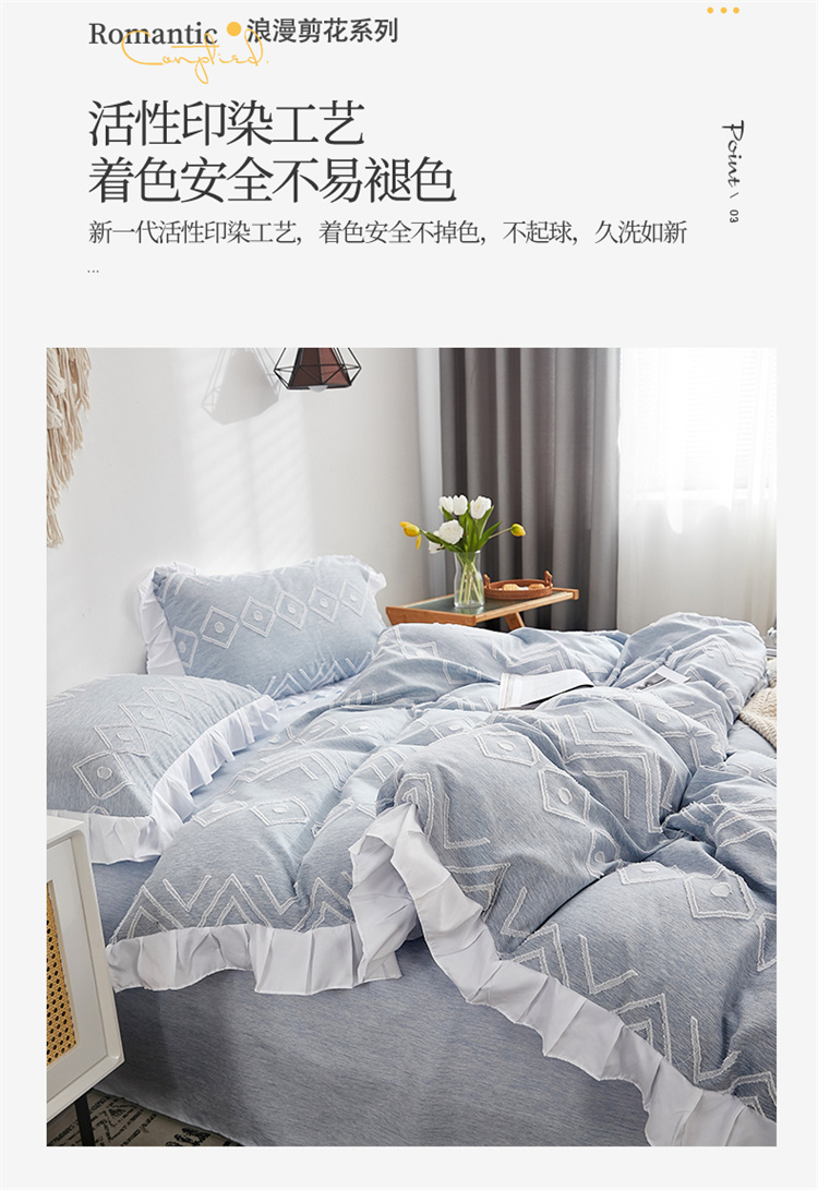 啊雅家居2025新款韩版肌理纹立体剪花花边四件套 肌理蓝