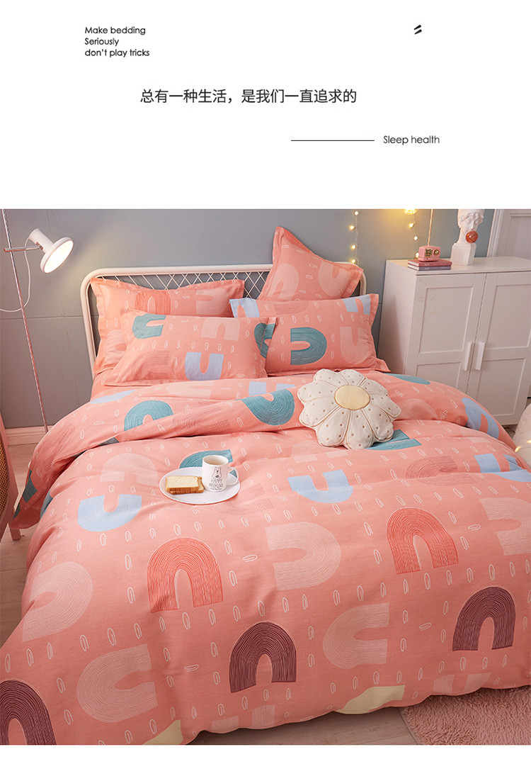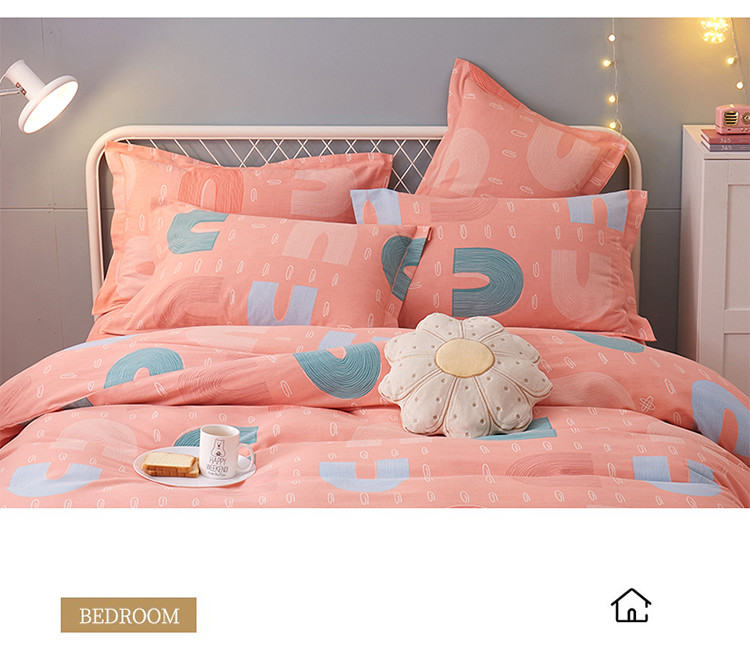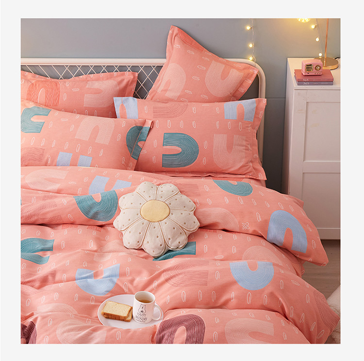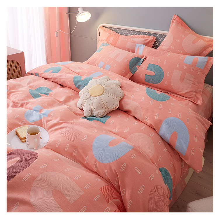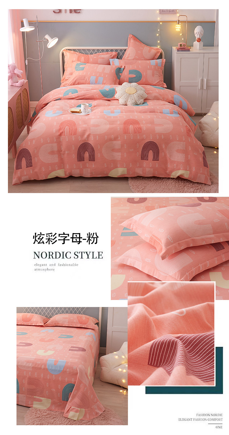 商品名称:金纱玉纺 2022新款印花加厚磨毛四件套 炫彩字母-粉