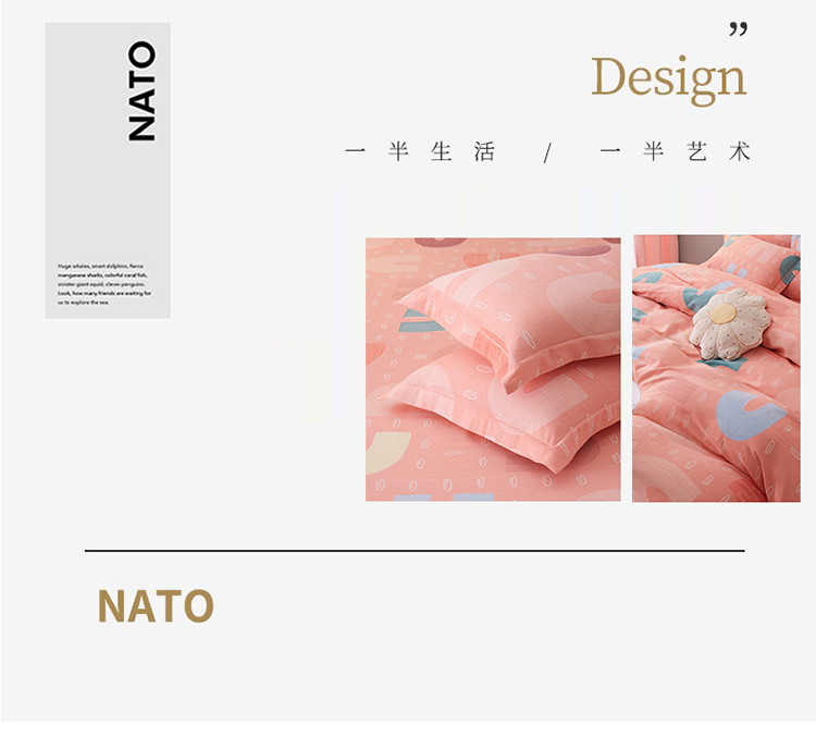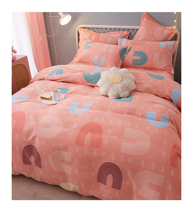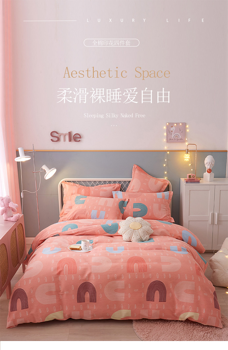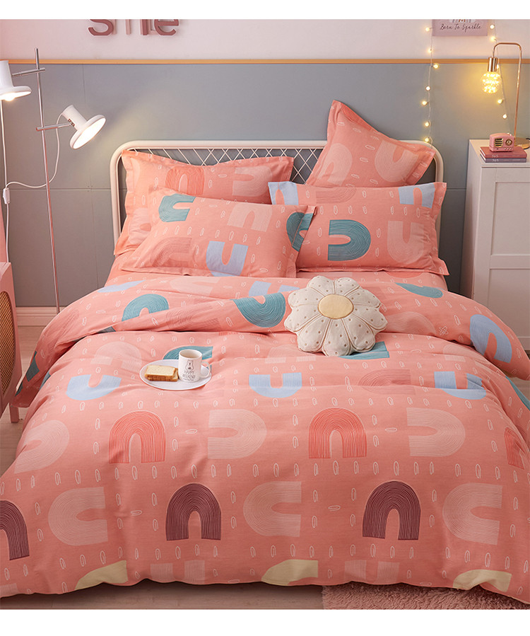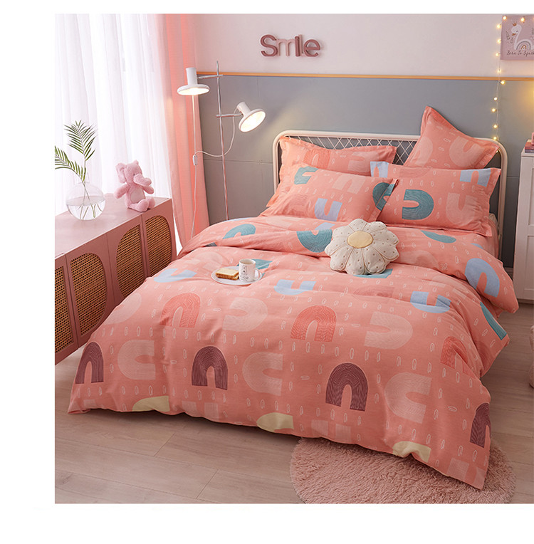 商品名称:金纱玉纺 2022新款印花加厚磨毛四件套 炫彩字母-粉