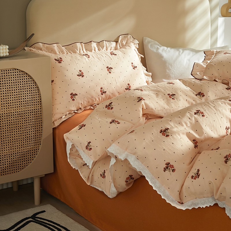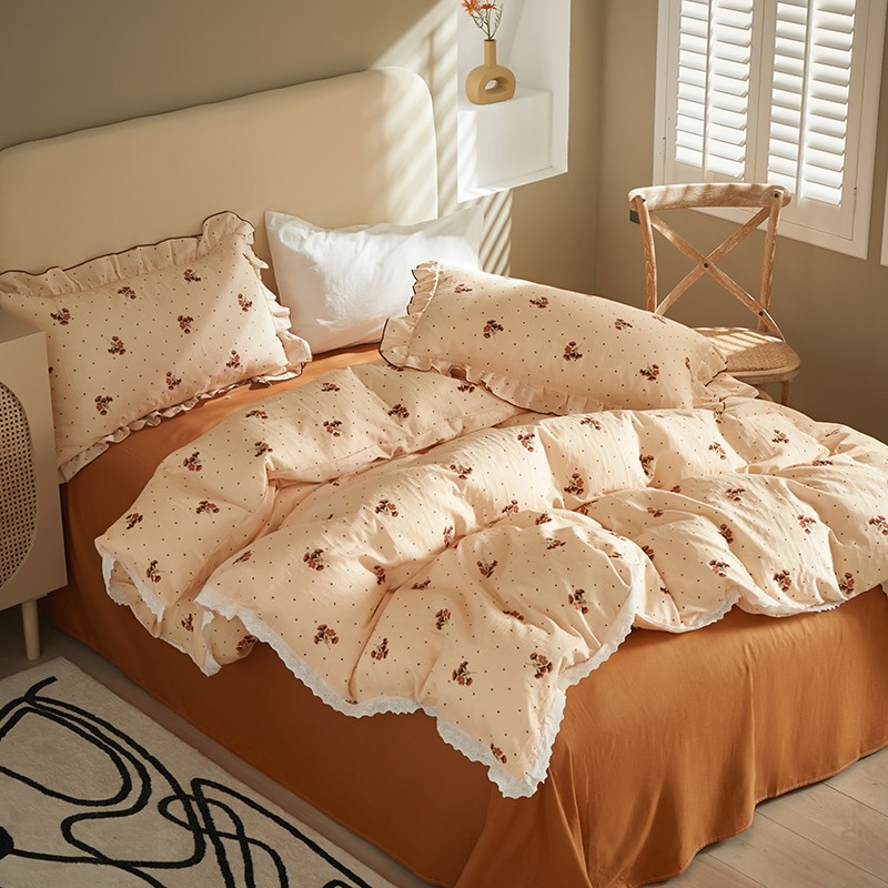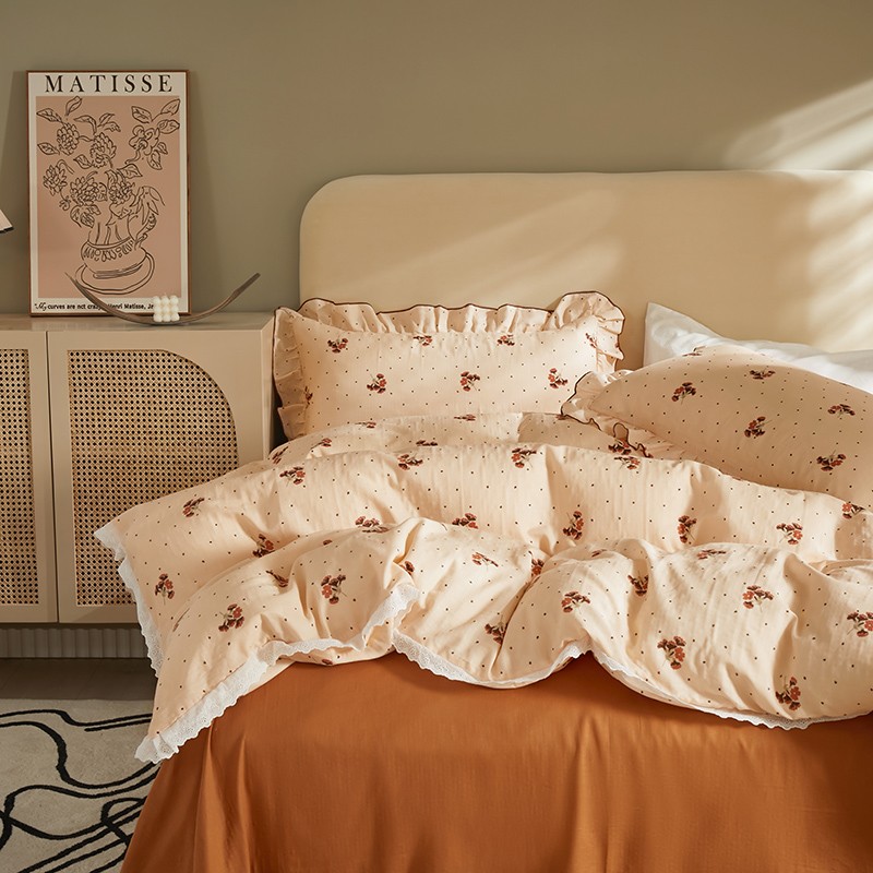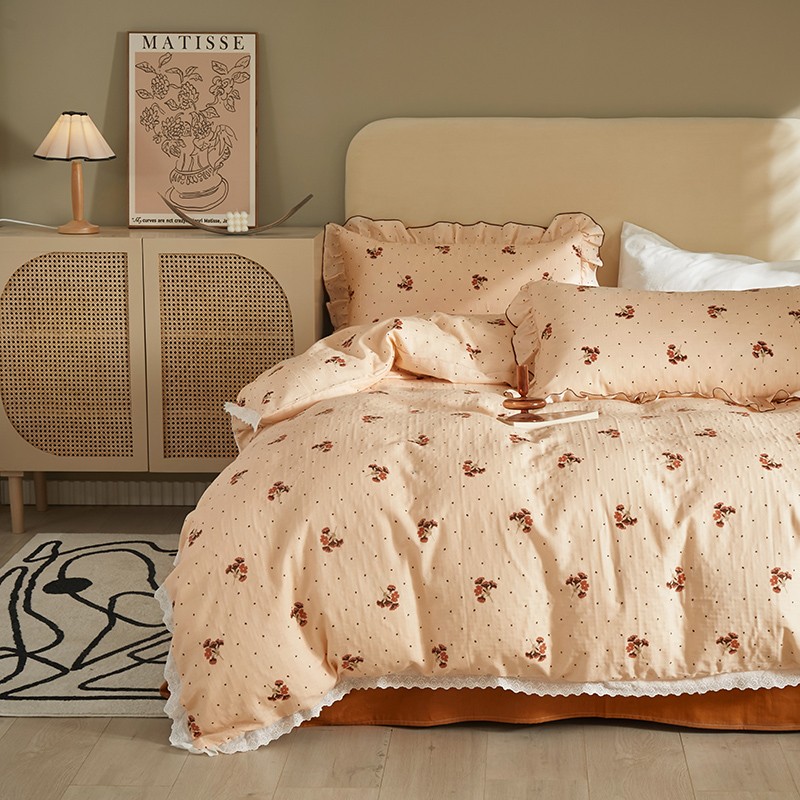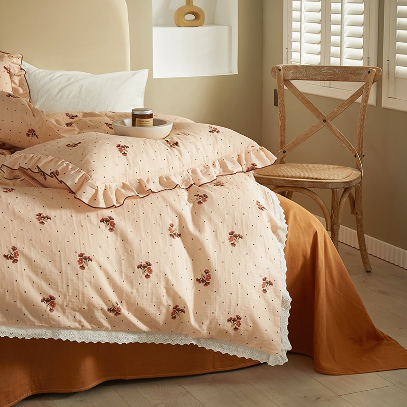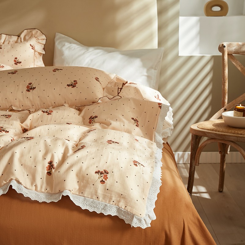(总)怡家居 2025新款全棉纯棉磨毛数码印花韩系花边四件套,初暖,兰序,阑珊,浪漫,玛丽亚,茵然,语棠,珍妮,紫蘑菇
