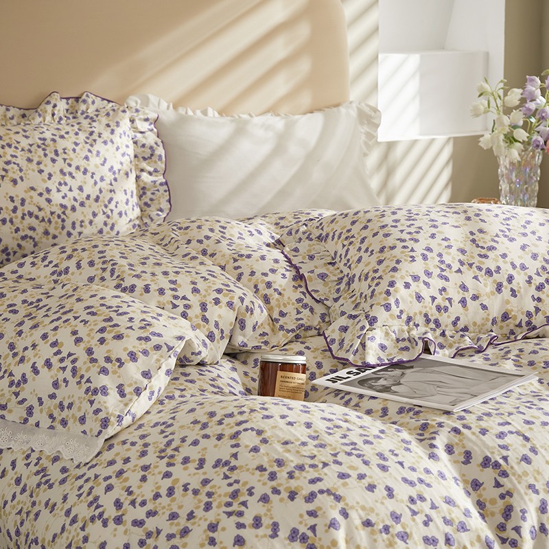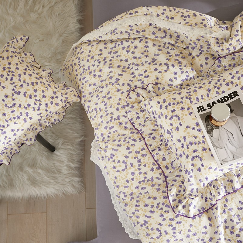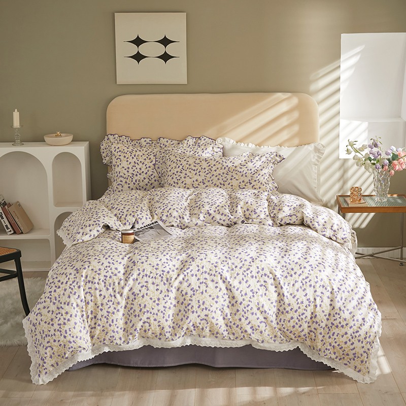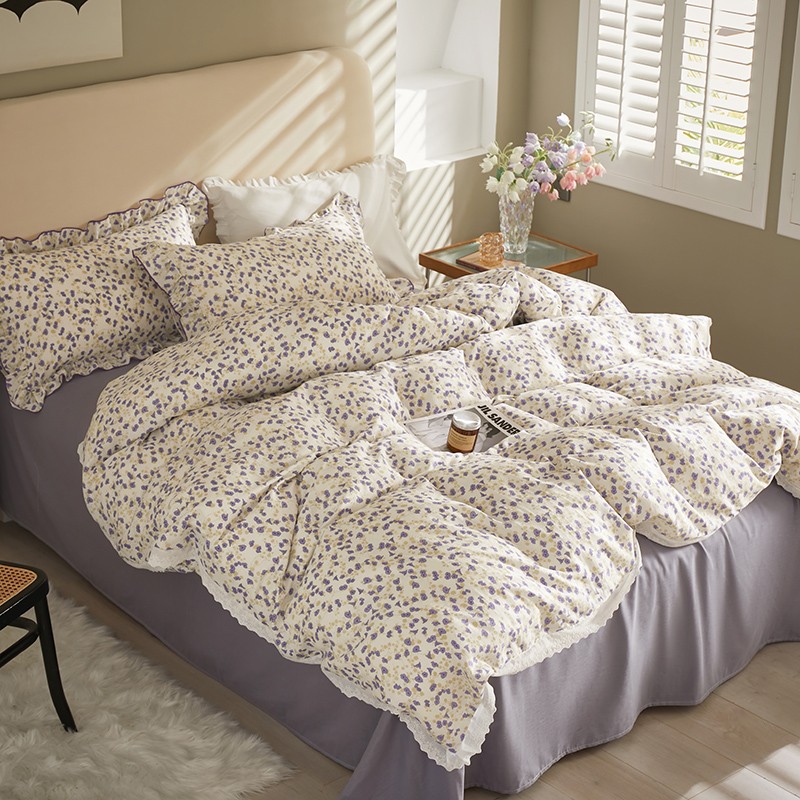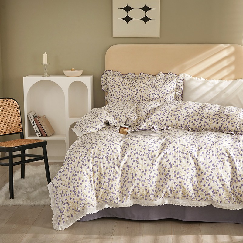 (总)怡家居 2025新款全棉纯棉磨毛数码印花韩系花边四件套,初暖,兰序,阑珊,浪漫,玛丽亚,茵然,语棠,珍妮,紫蘑菇