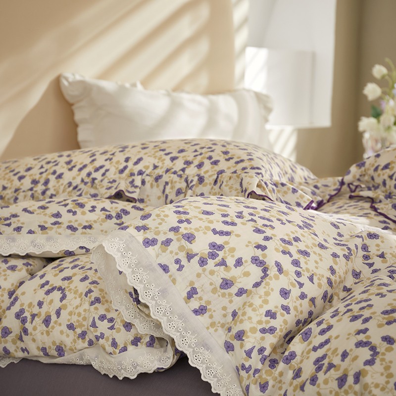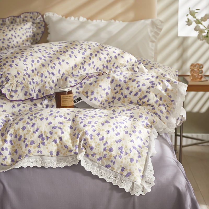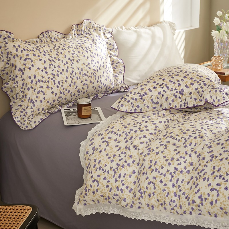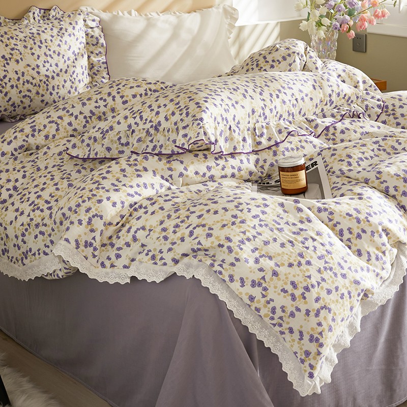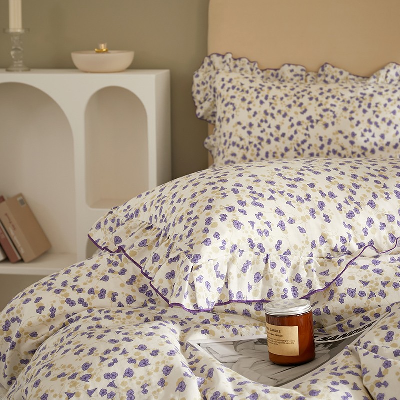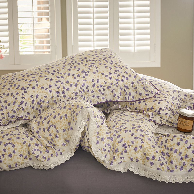(总)怡家居 2025新款全棉纯棉磨毛数码印花韩系花边四件套,初暖,兰序,阑珊,浪漫,玛丽亚,茵然,语棠,珍妮,紫蘑菇