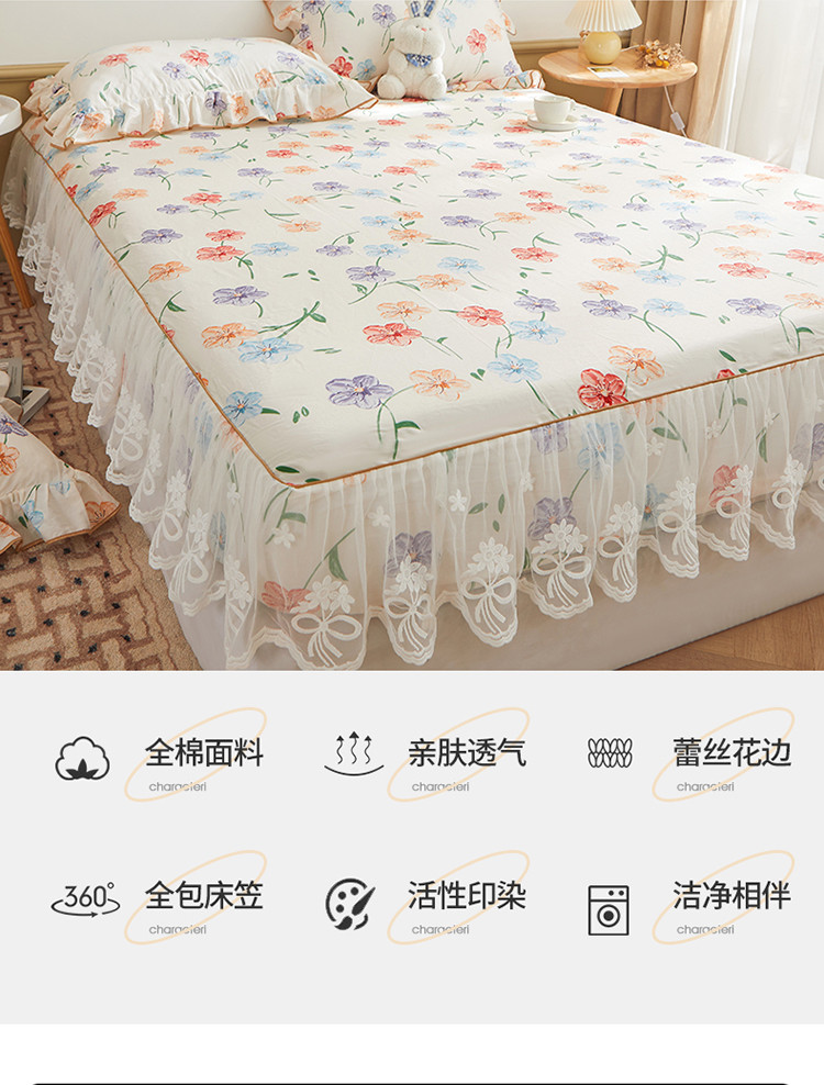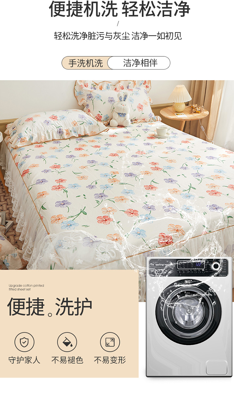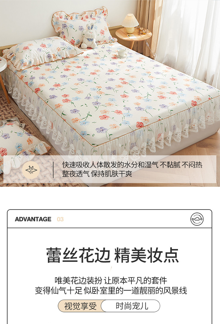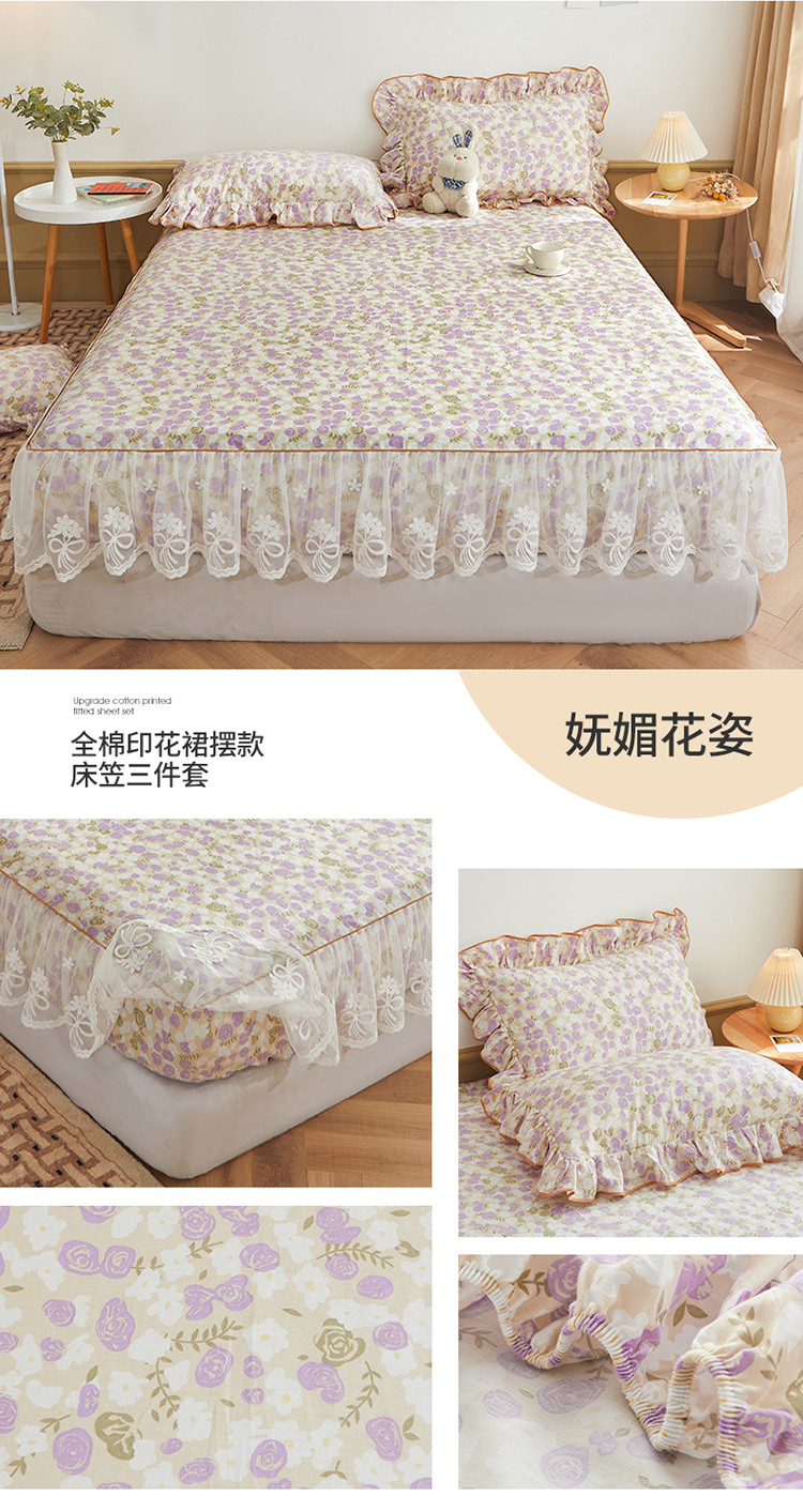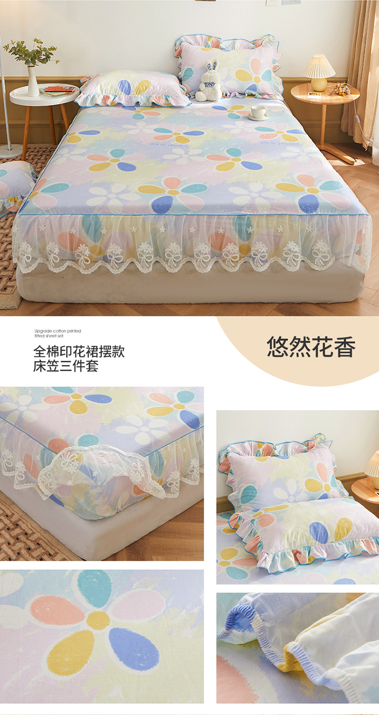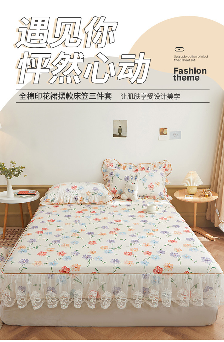 商品名称:(总)宜凡 2023新款全棉印花单层裙边系列-床笠三件套