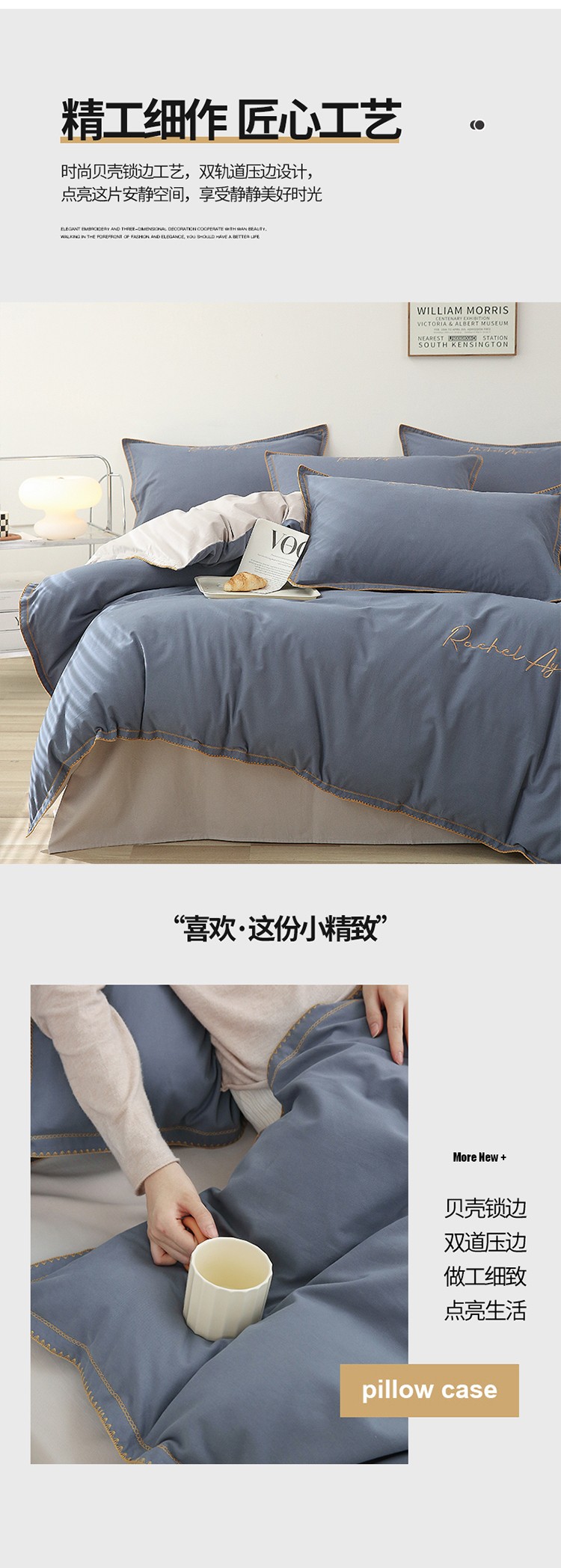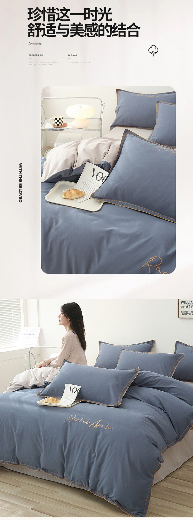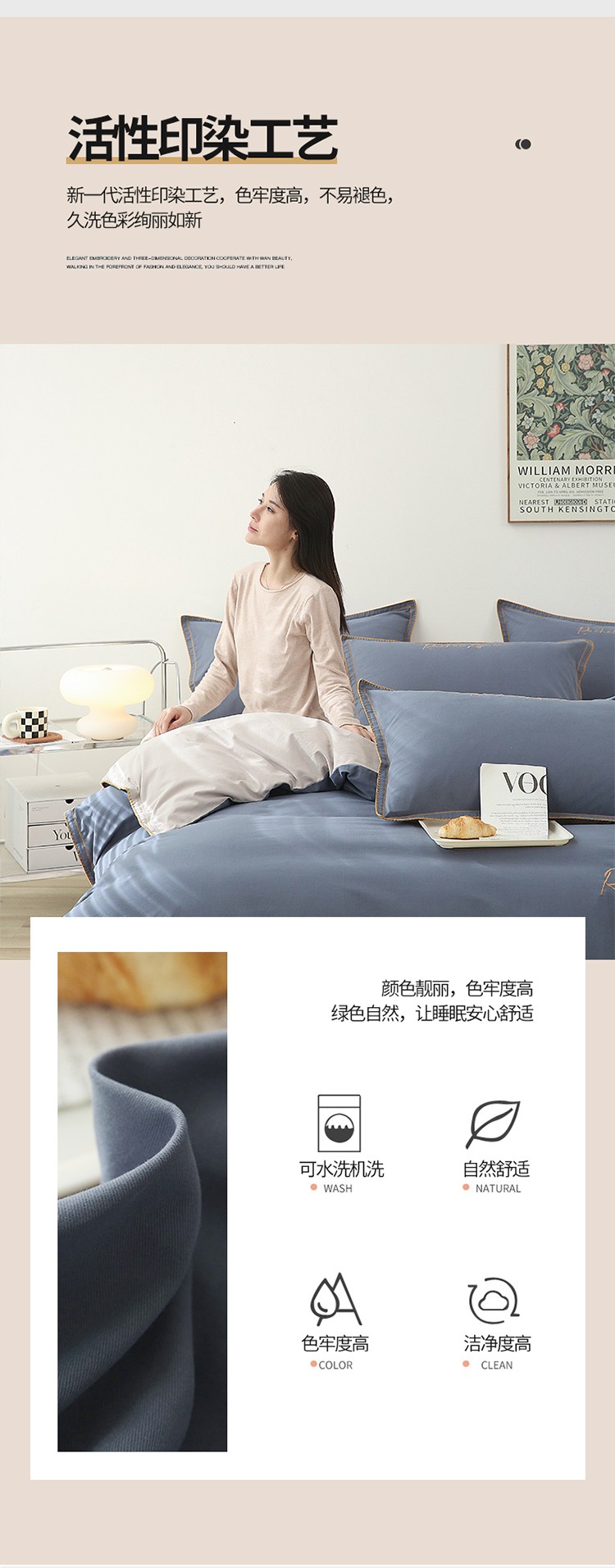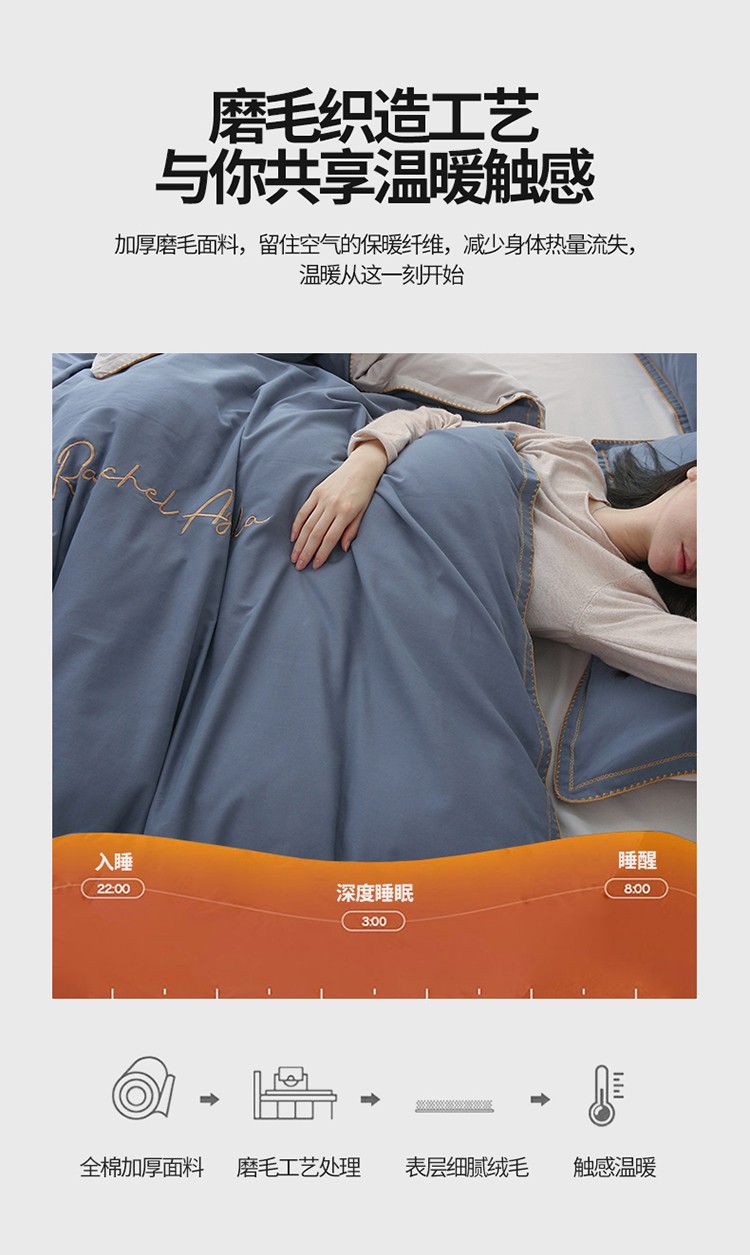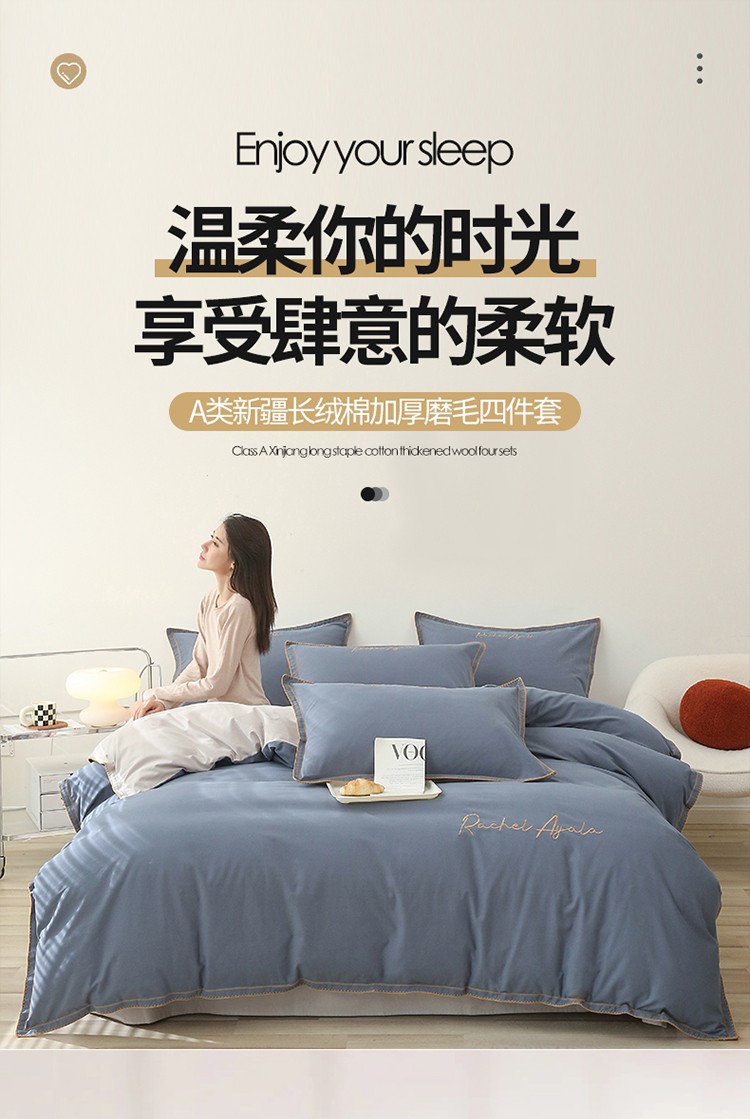 艾莱2023新款A类新疆长绒棉加厚柔顺磨毛四件套瑞秋-贵族蓝