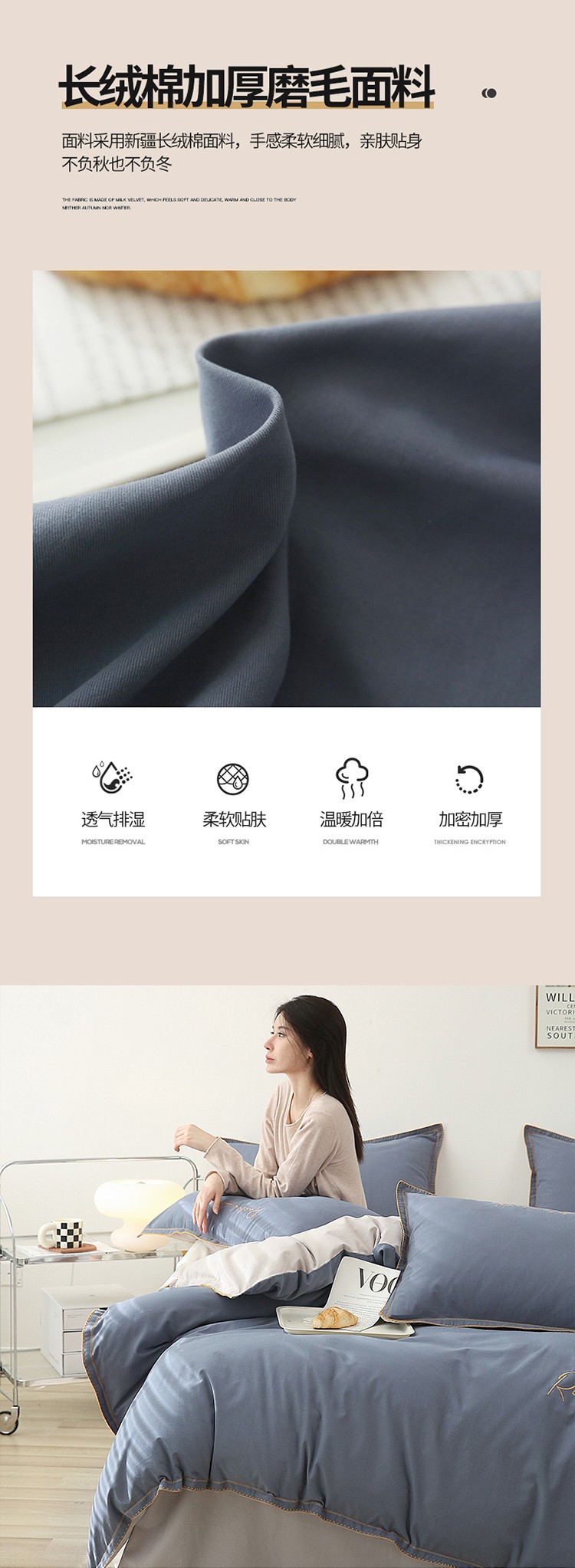 商品名称:艾莱2023新款A类新疆长绒棉加厚柔顺磨毛四件套瑞秋-贵族蓝