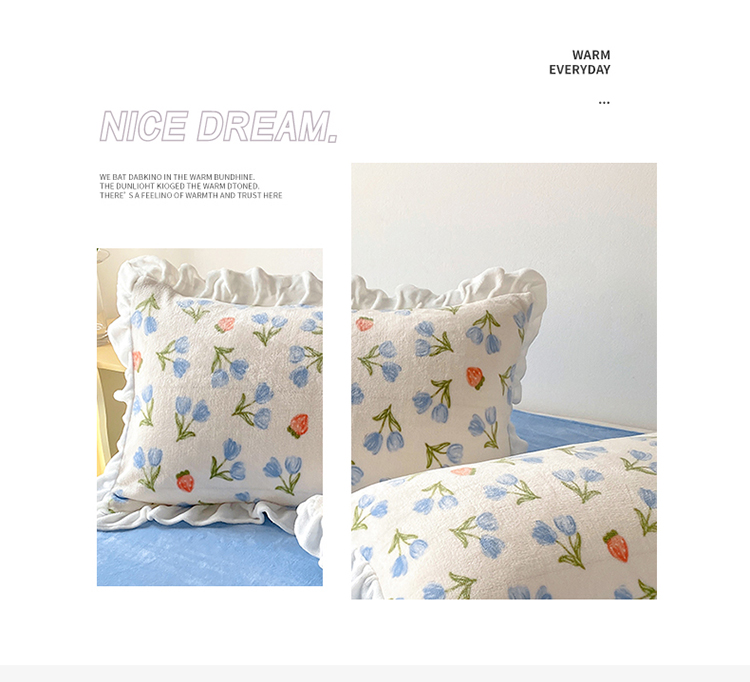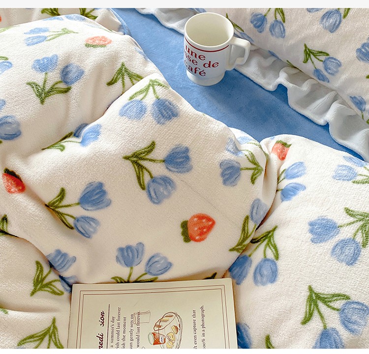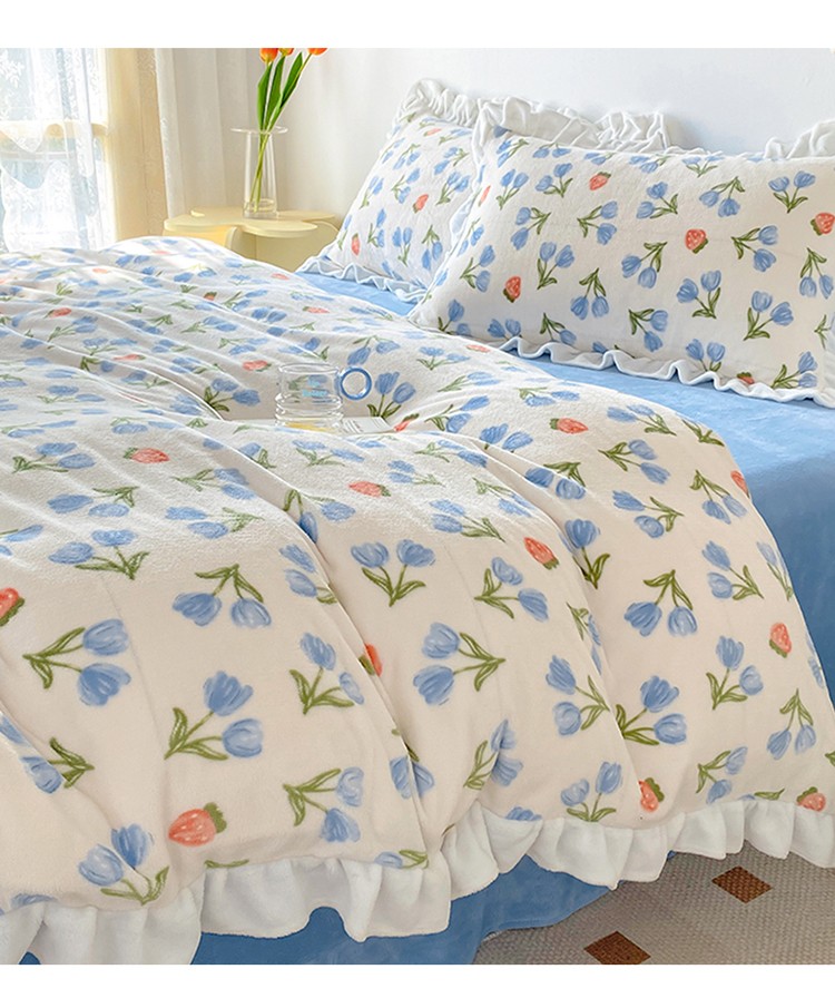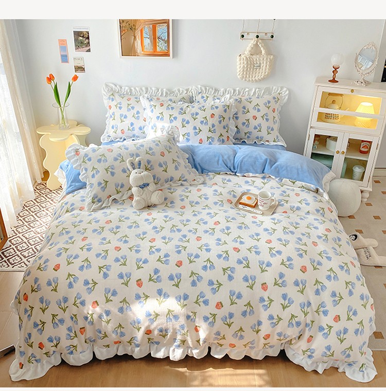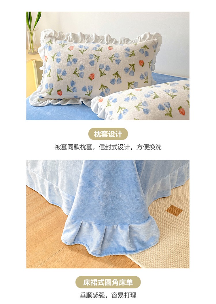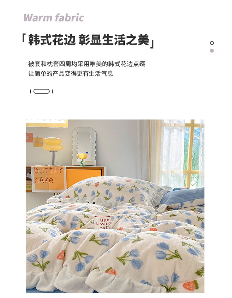 呗旺鹿2022新ykk拉链荷叶边印花牛奶绒四件套法莱绒 偏爱