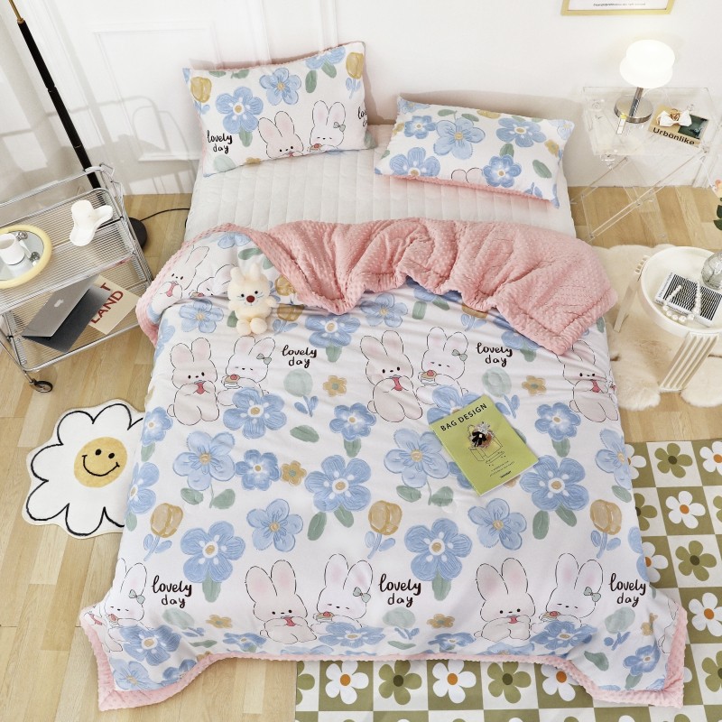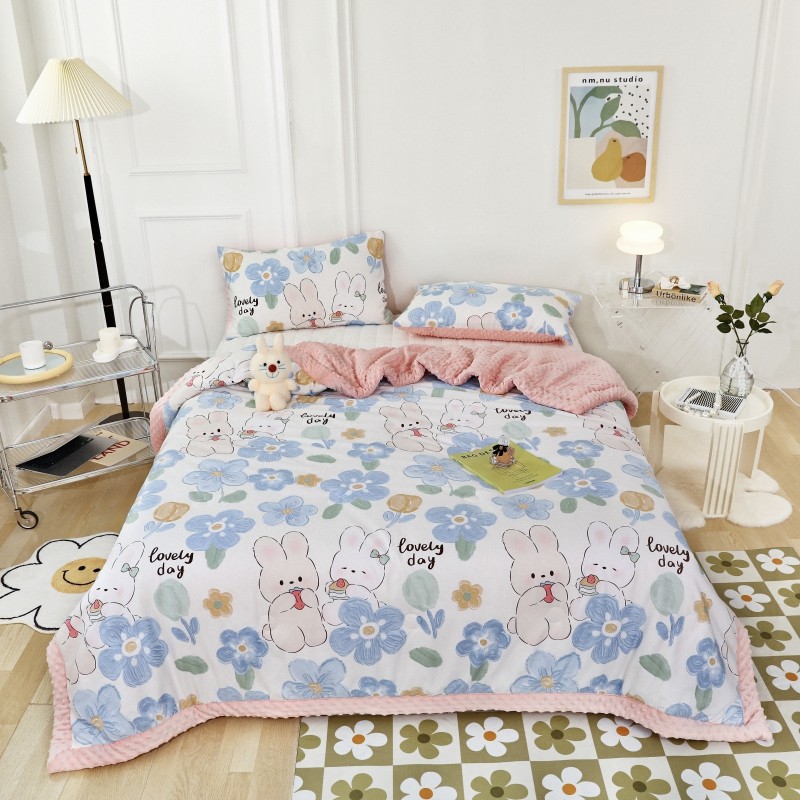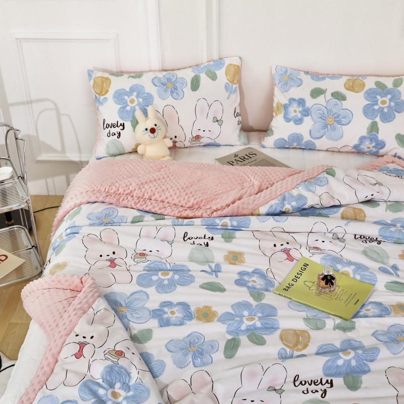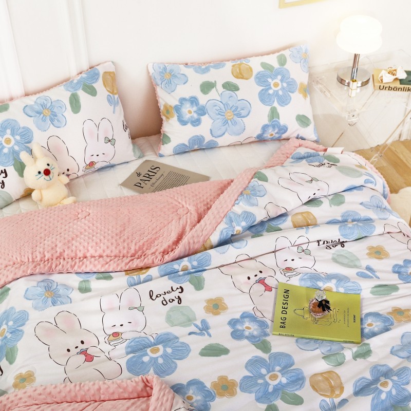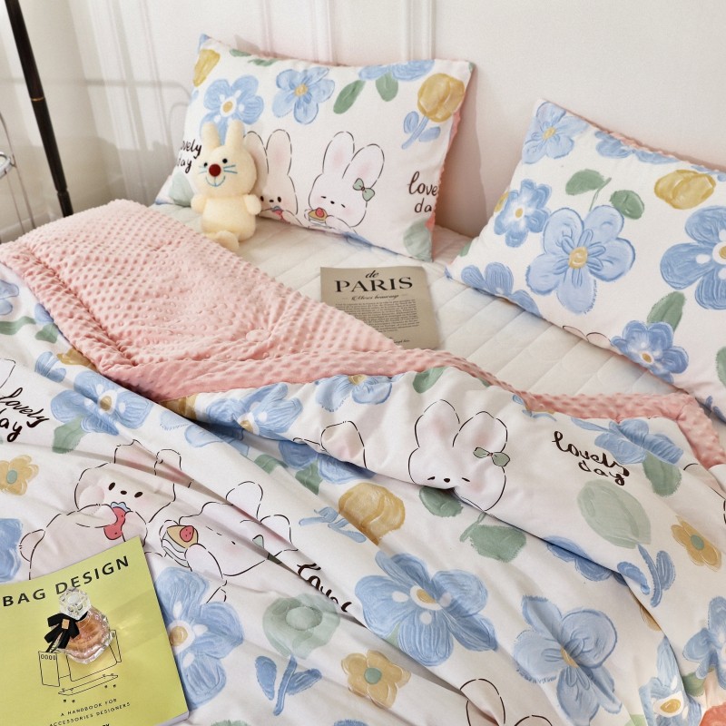 商品名称:星期八 2022新款全棉豆豆被春秋被-系列二 两只兔