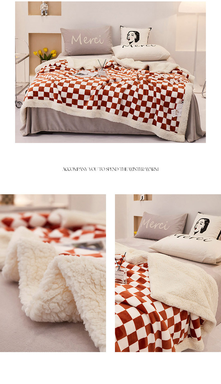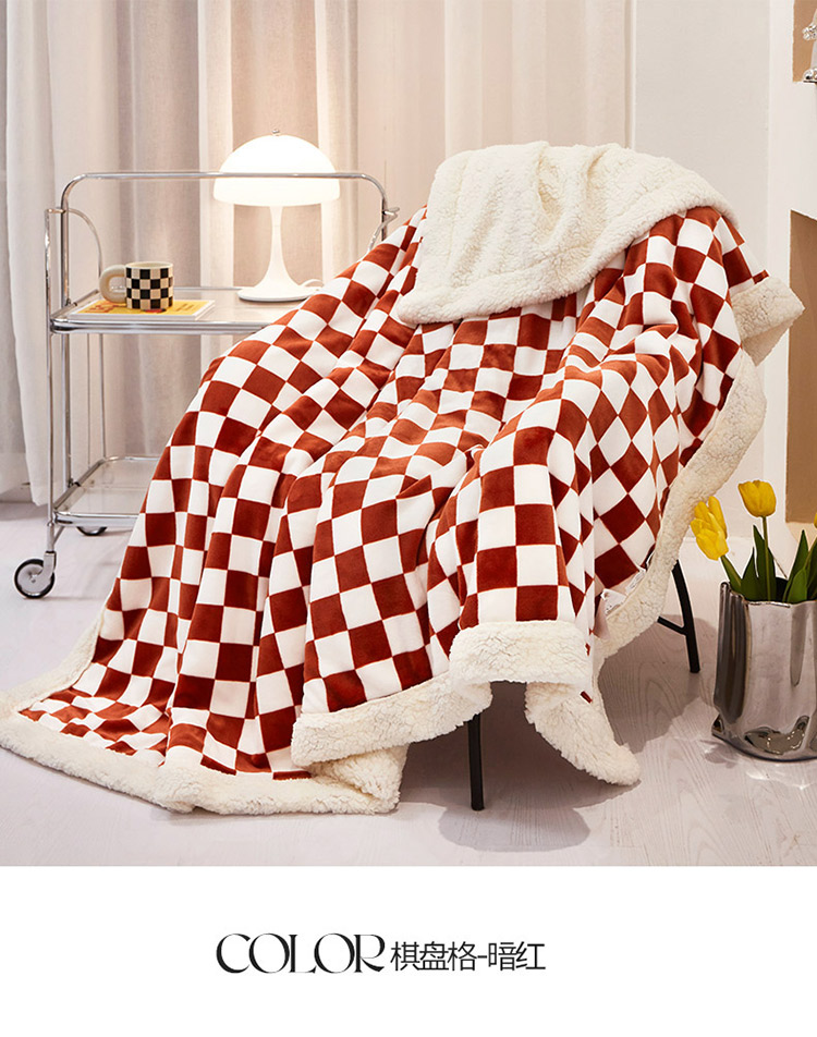 商品名称:席之家 2024新加厚保暖棋盘格羊羔绒毛毯盖毯子 暗红