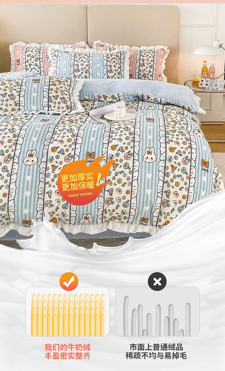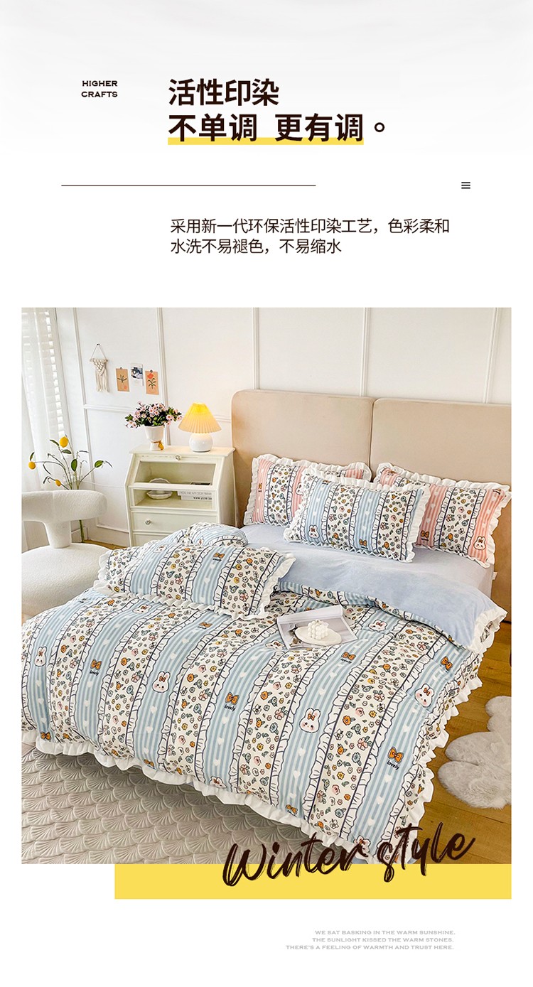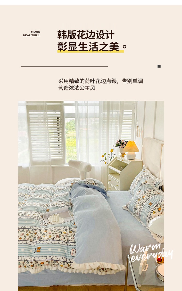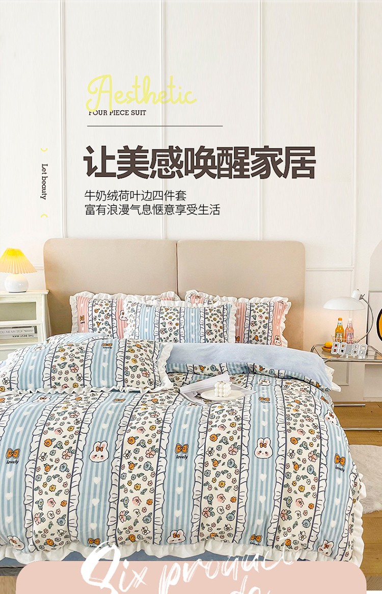 (总)二八年华 2025新款韩式花边款牛奶绒四件套,天蓝,豆沙,鹅黄,粉玉,水绿,鸢紫