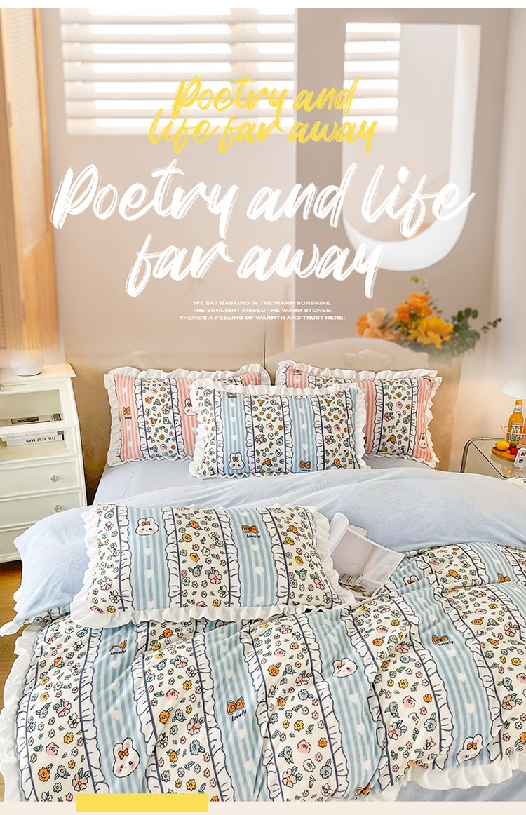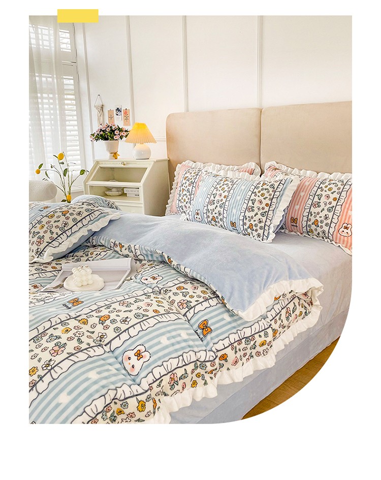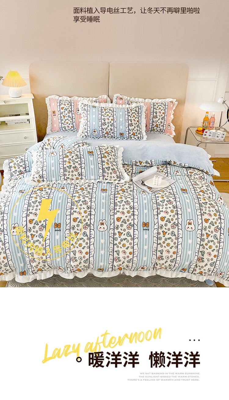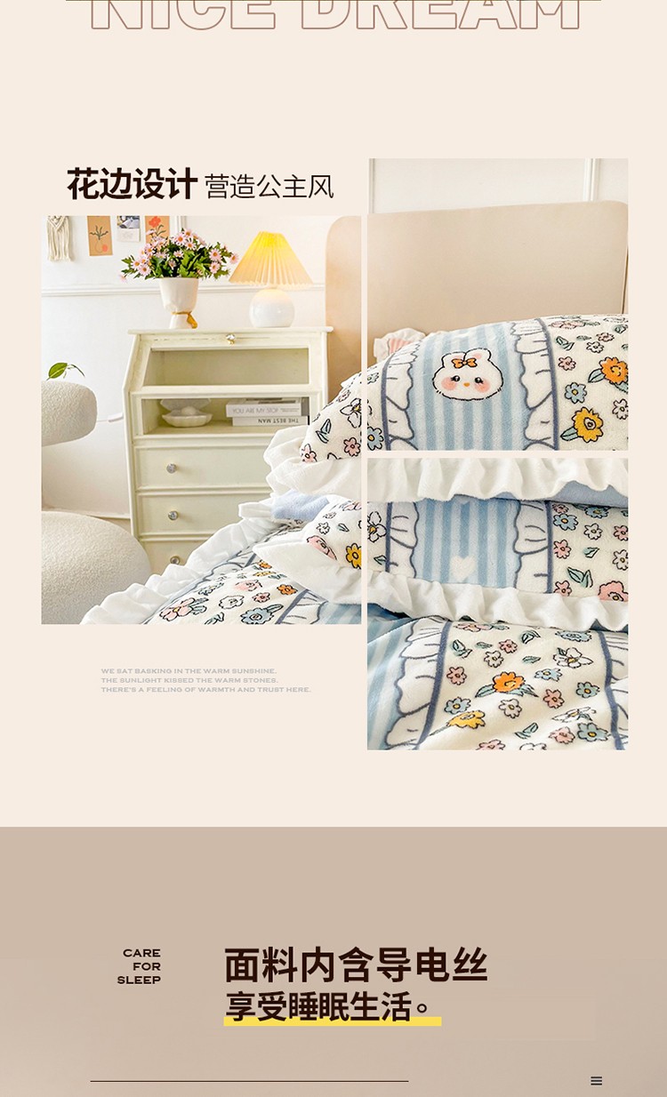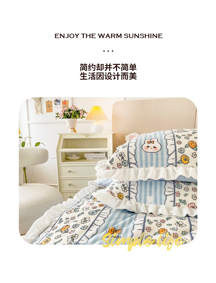 (总)二八年华 2025新款韩式花边款牛奶绒四件套,天蓝,豆沙,鹅黄,粉玉,水绿,鸢紫