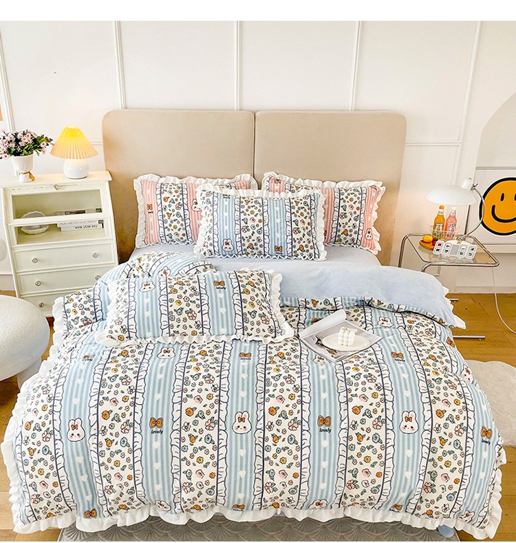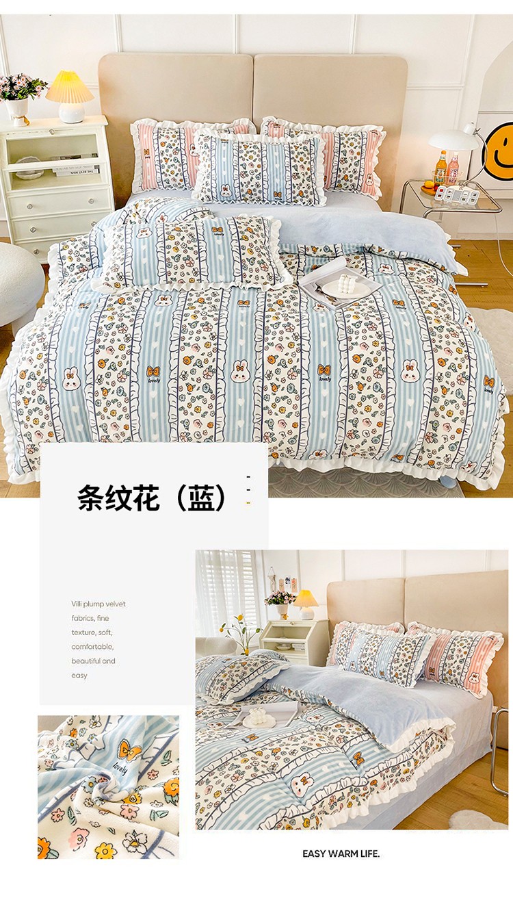 商品名称:二八年华 2022新款印花牛奶绒四件套 条纹花(蓝)