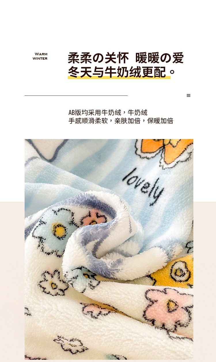 二八年华 2022新款印花牛奶绒四件套 条纹花(蓝)