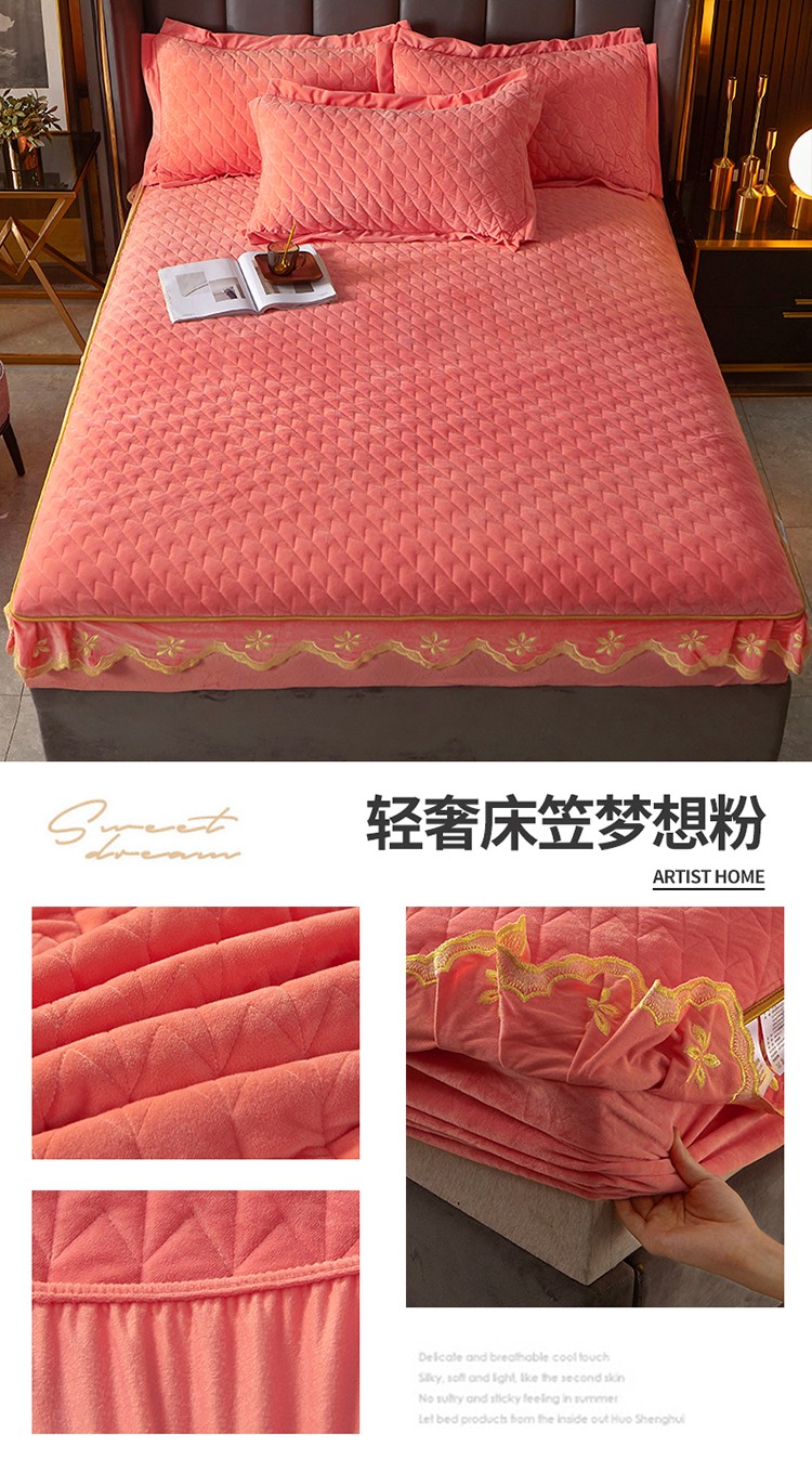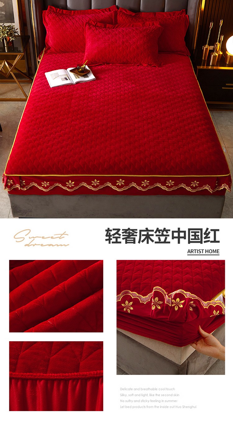 (总)恒爱 2022秋冬水晶绒翩翩花舞夹棉单床裙,大红色,豆沙红,橄榄绿,公主粉,桔色,咖啡色,孔雀绿,拉菲红,罗兰紫,玫红色,美人玉,米白色,米驼色,抹茶绿,浅灰色,紫色