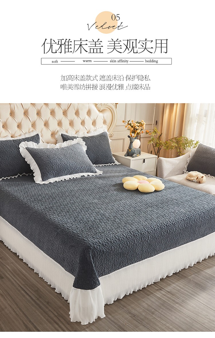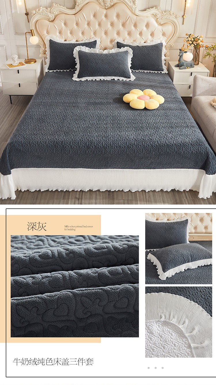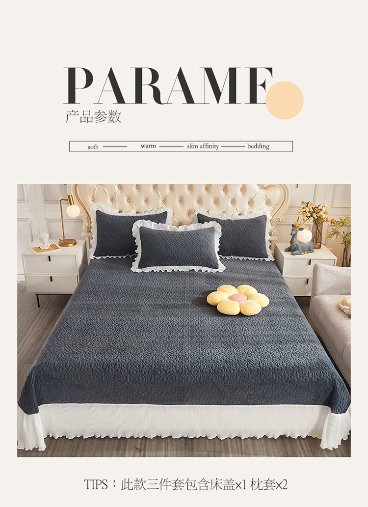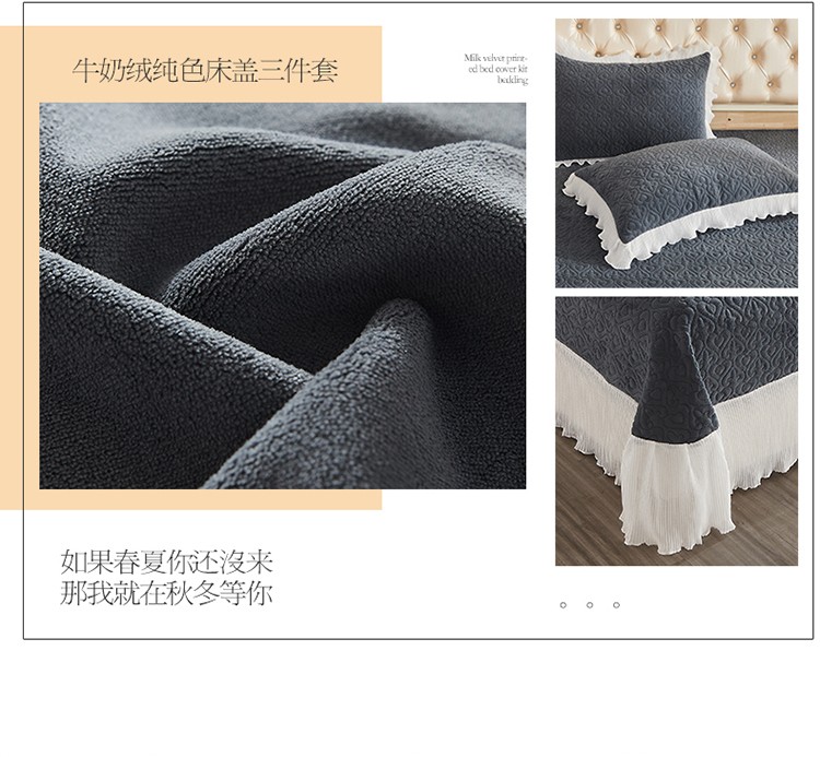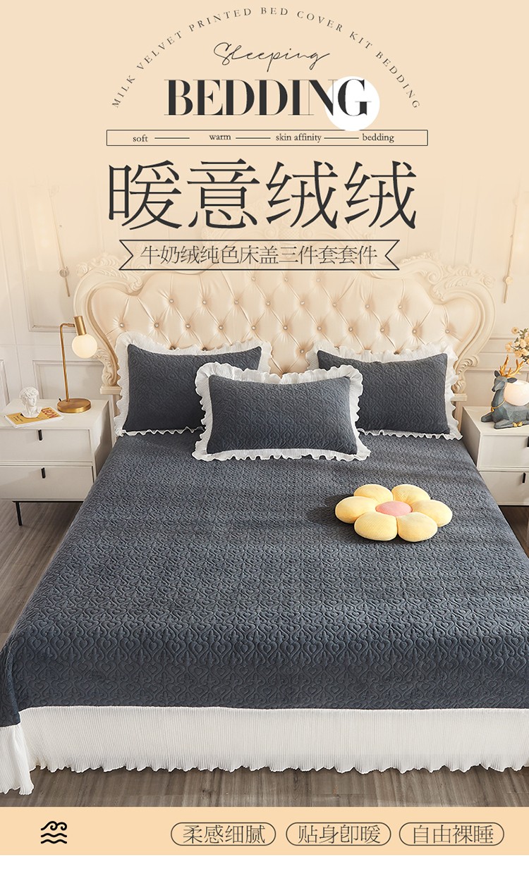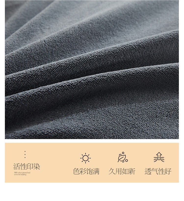 当前位置: 91家纺网 > 商品网购 > 床品套件 > 四件套 > 全棉普通四件套 > 宜凡 2022新款牛奶绒小清新床盖三四件套 深灰