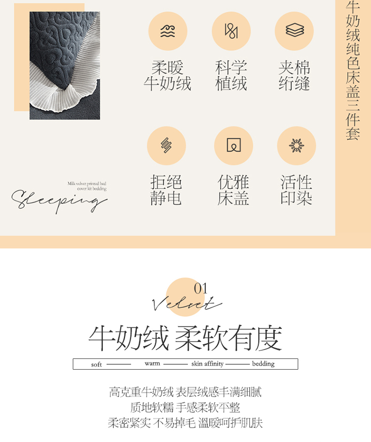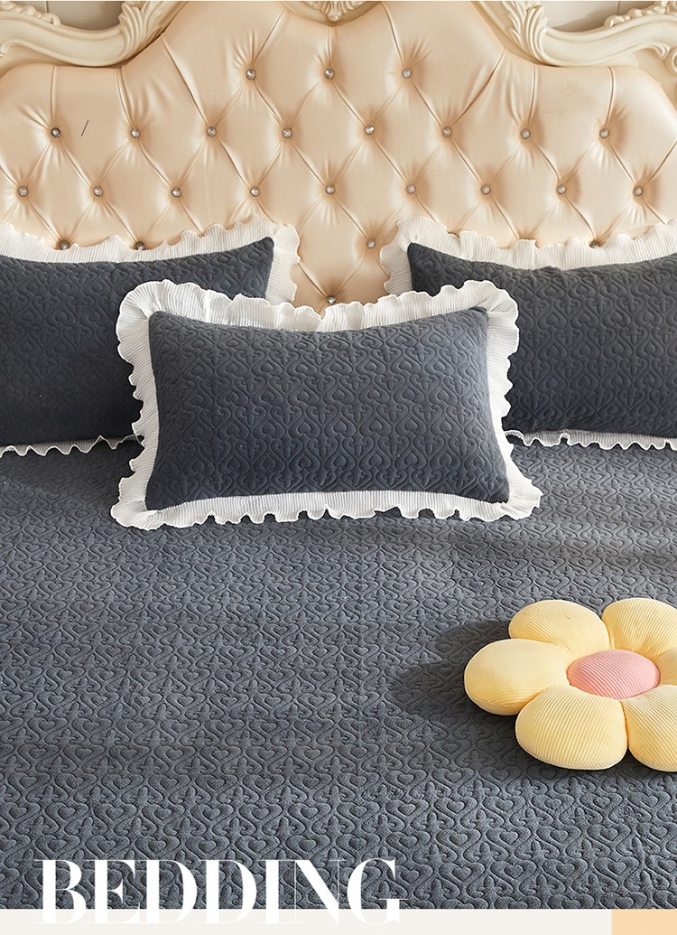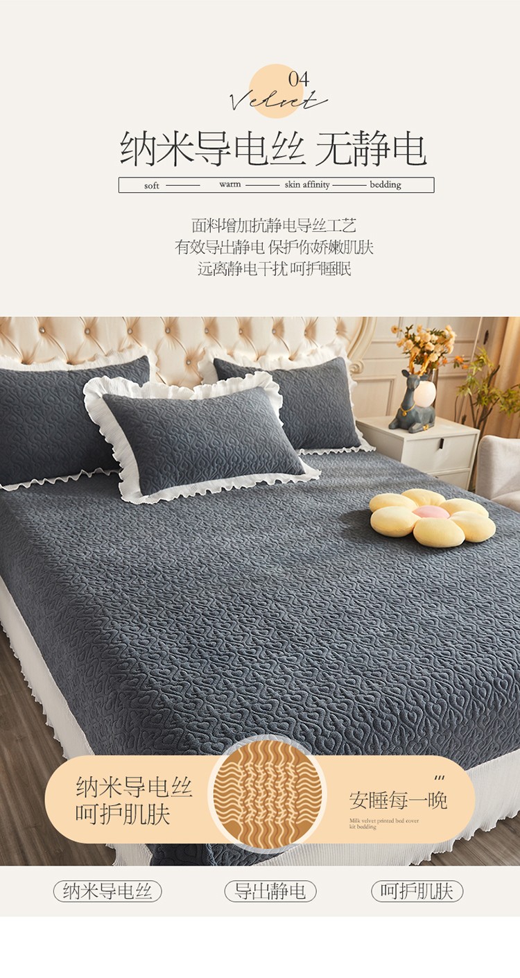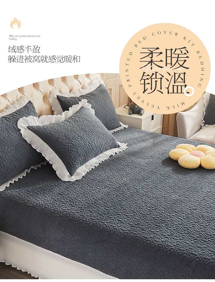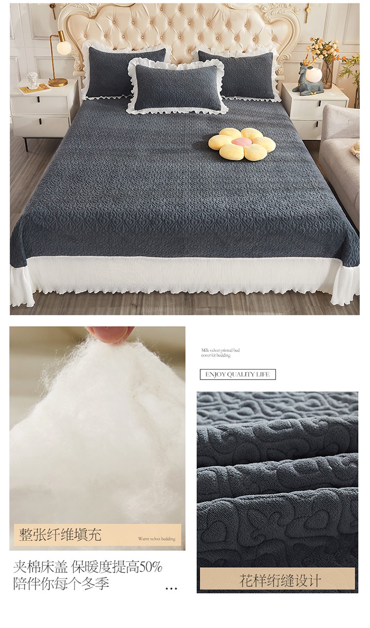 当前位置: 91家纺网 > 商品网购 > 床品套件 > 四件套 > 全棉普通四件套 > 宜凡 2022新款牛奶绒小清新床盖三四件套 深灰