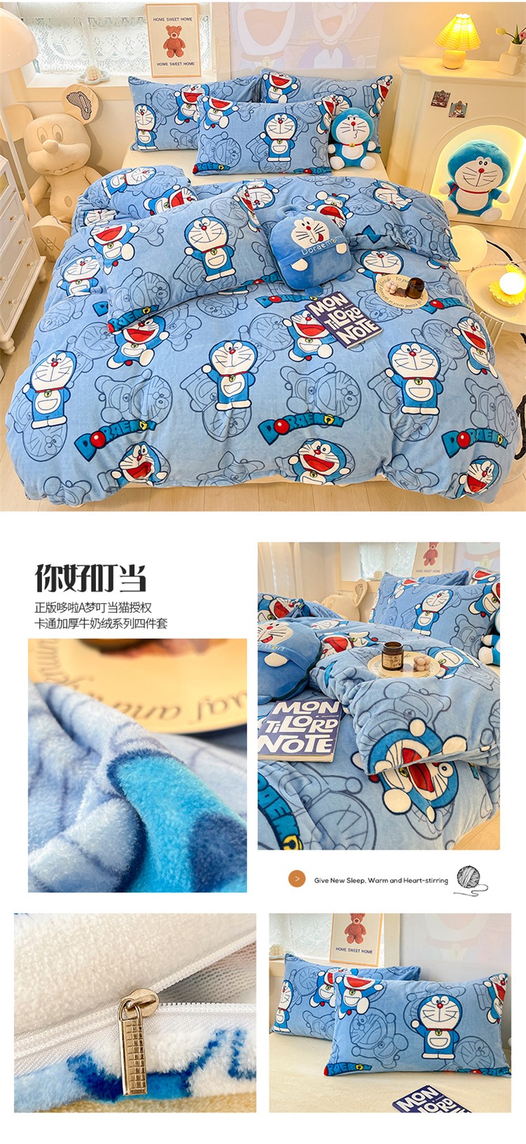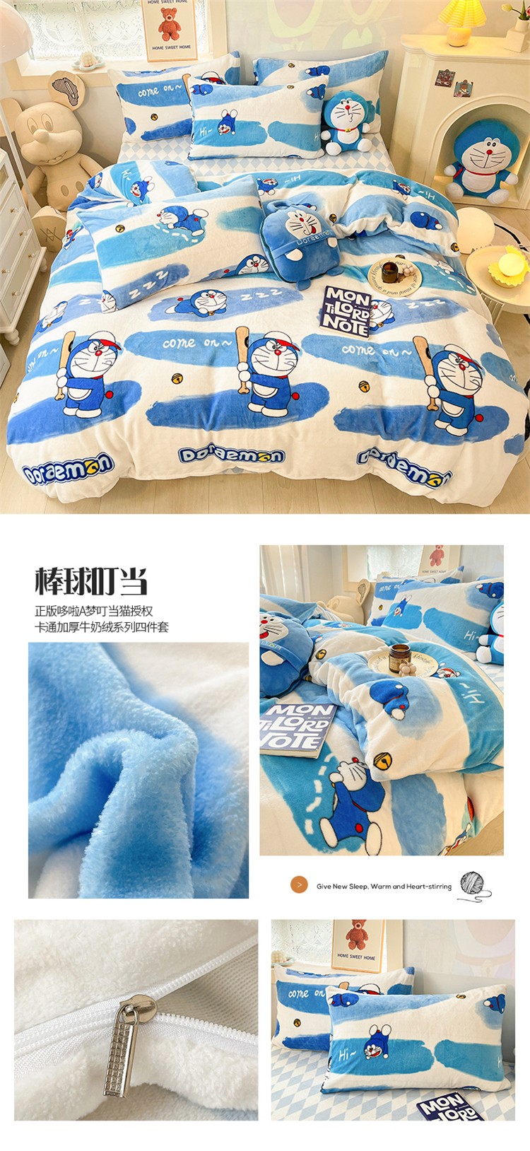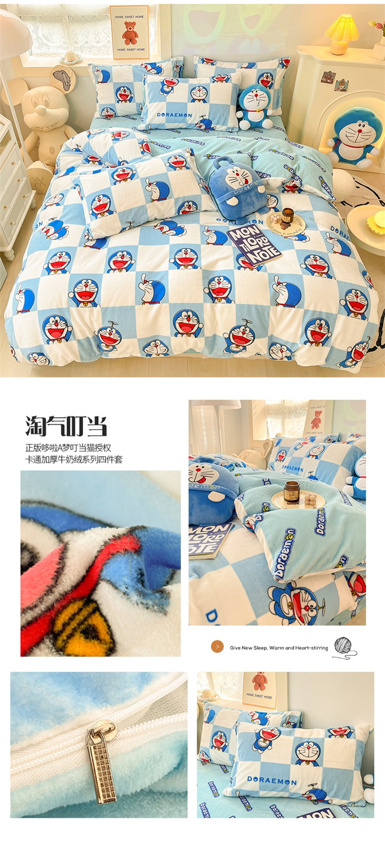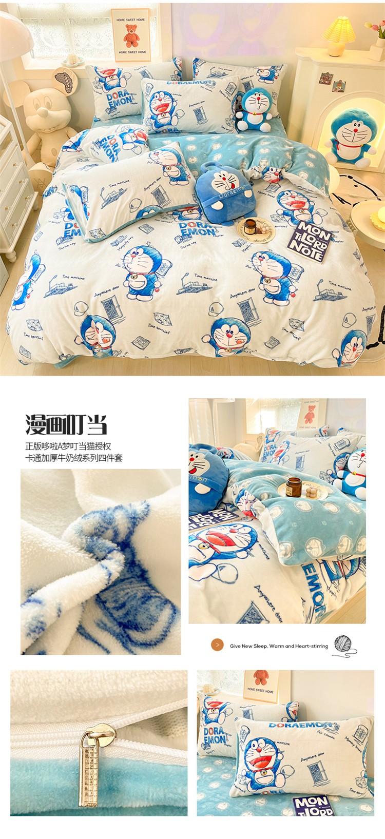 (总)桃子家居 2022新款正版授权卡通加厚牛奶绒系列四件套