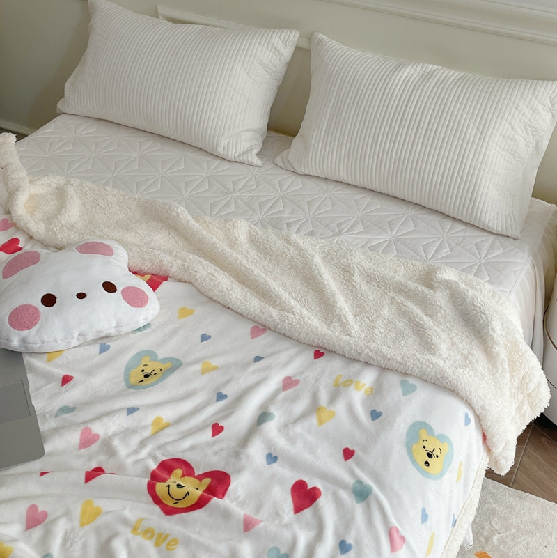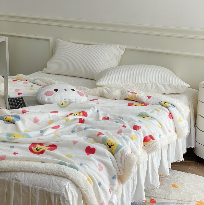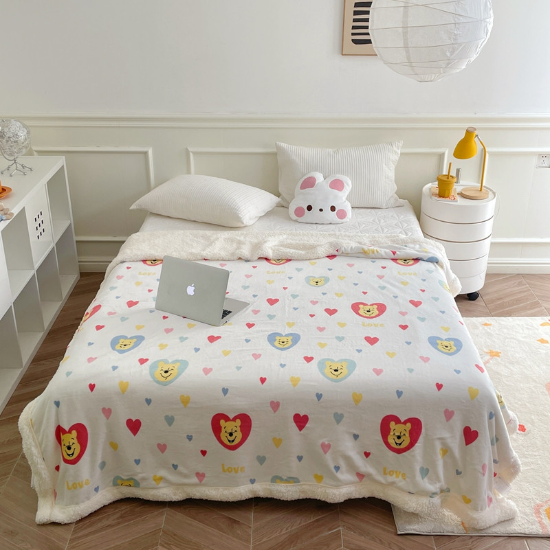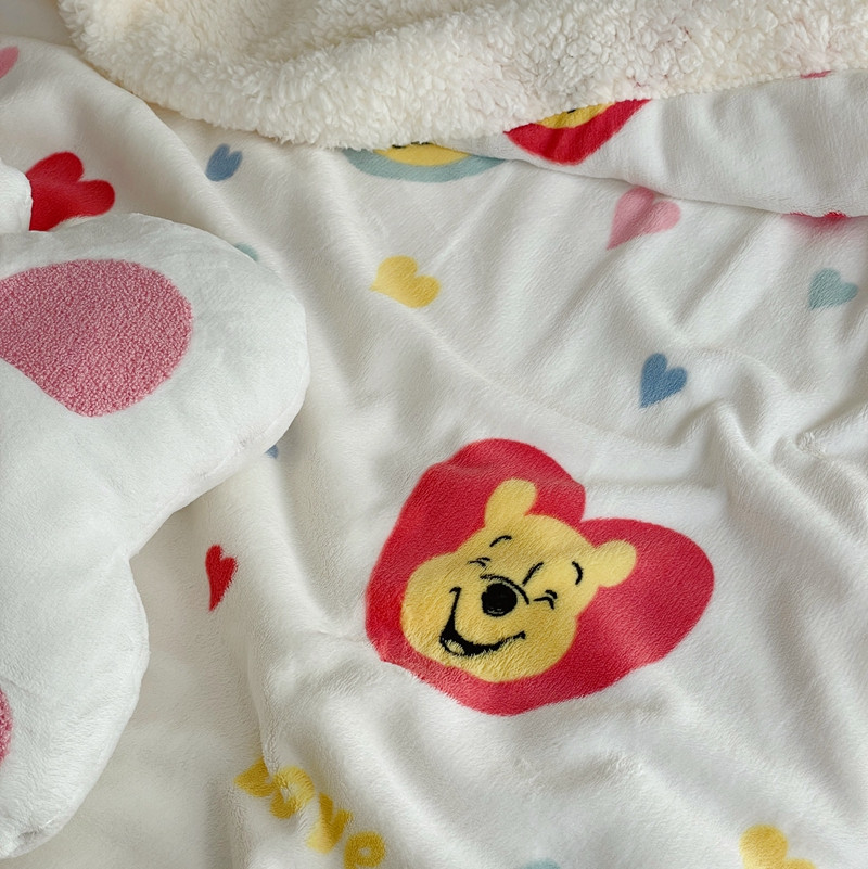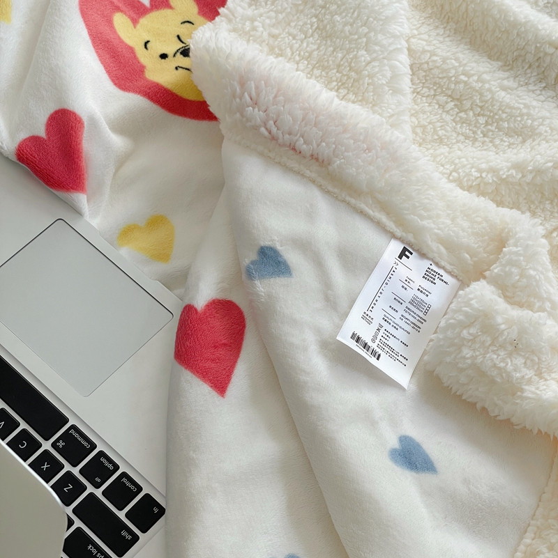 时年 2022新款牛奶绒拼羊羔绒毯 爱心维尼