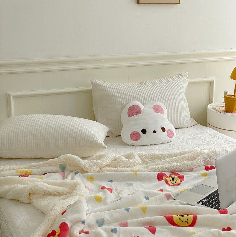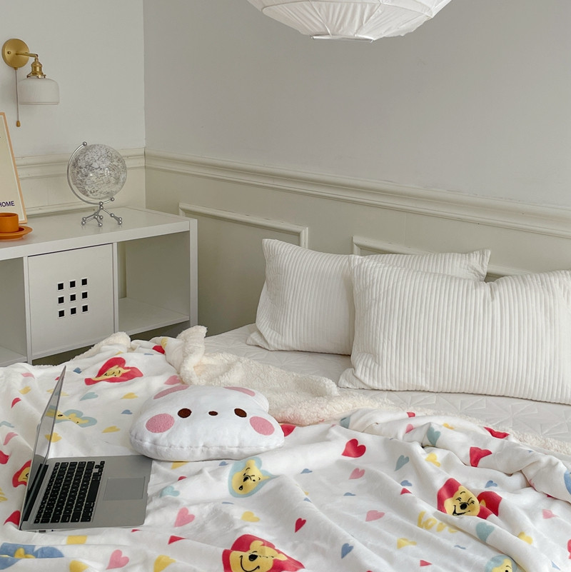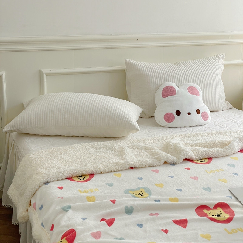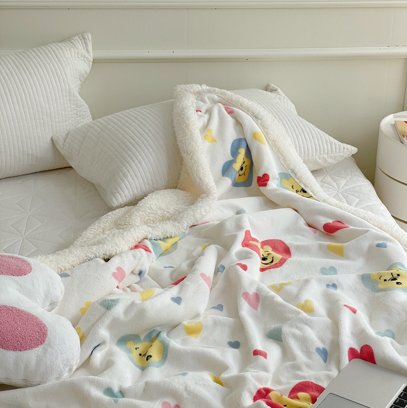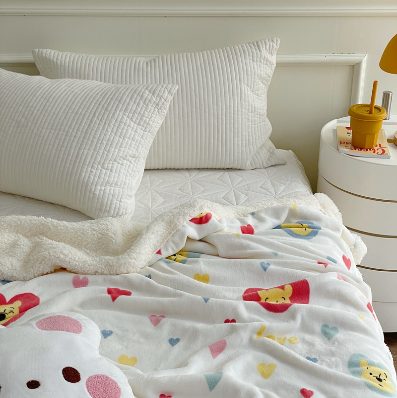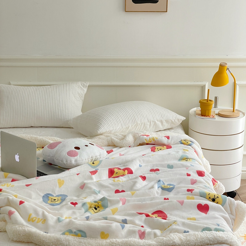 时年 2022新款牛奶绒拼羊羔绒毯 爱心维尼