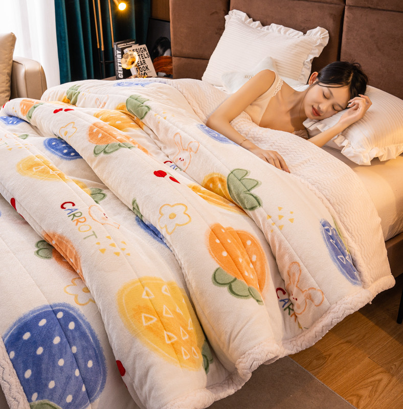 美莱家纺 2022新款牛奶绒贝贝绒夹棉加厚三层毛毯盖毯午睡毯 奶油草莓