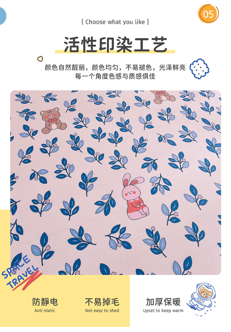 • 91家纺网 家纺一手货源 找家纺 芃成 2022新款加厚双面牛奶绒印花床品系列-单床笠 菲菲兔