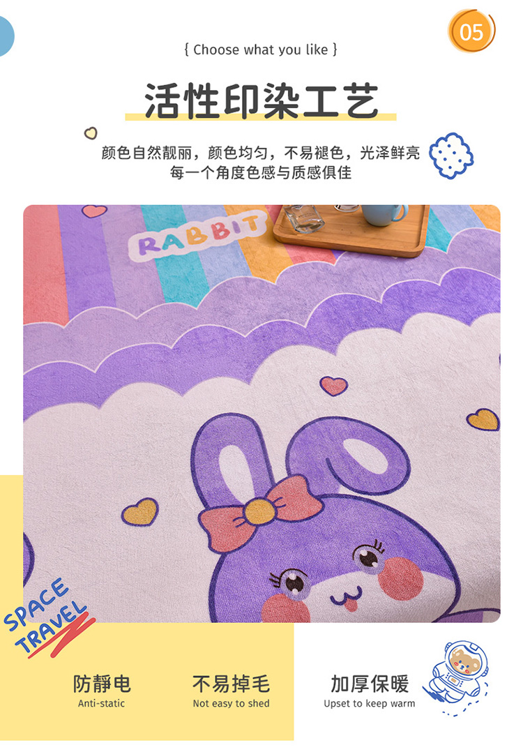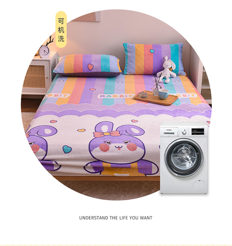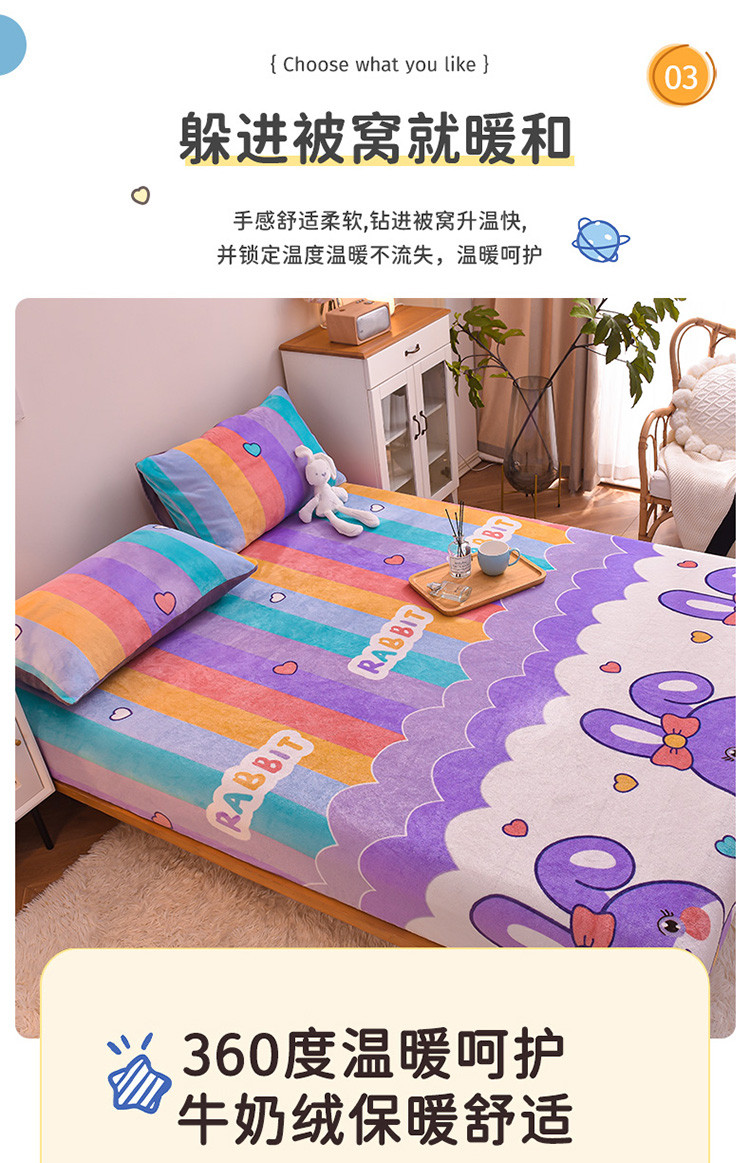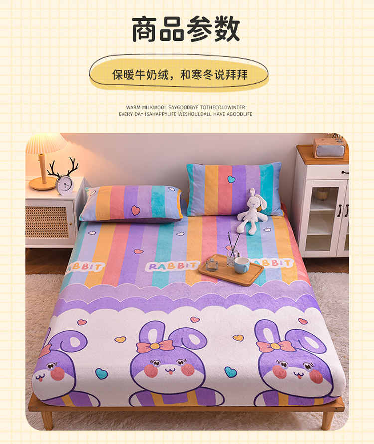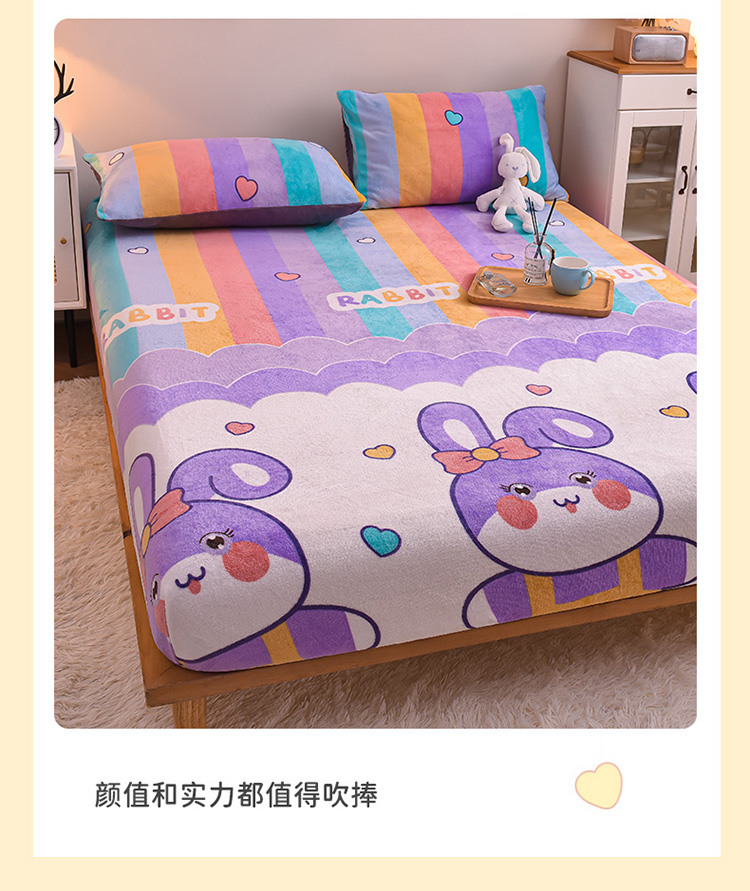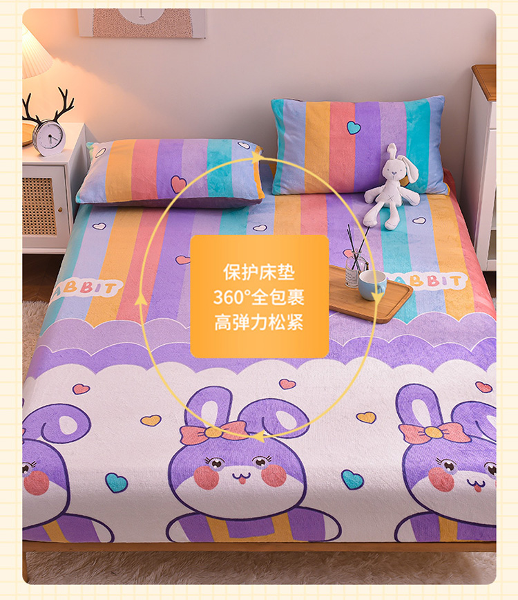 • 91家纺网 家纺一手货源 找家纺 芃成 2022新款加厚双面牛奶绒印花床品系列-单床笠 可爱兔