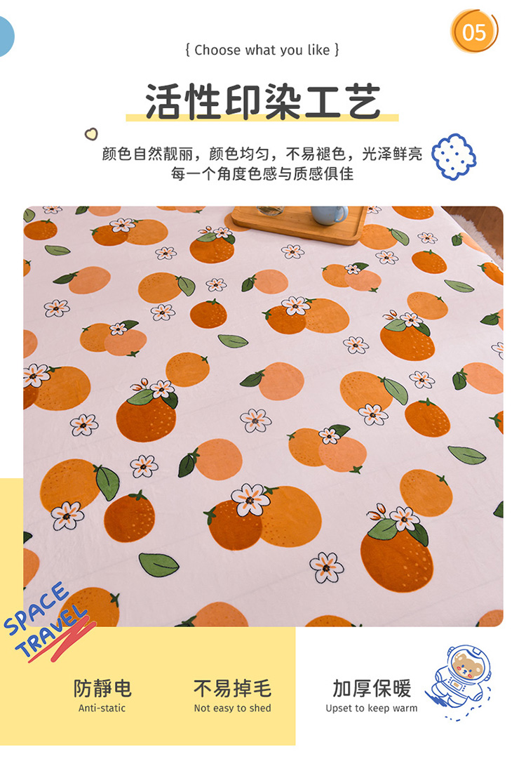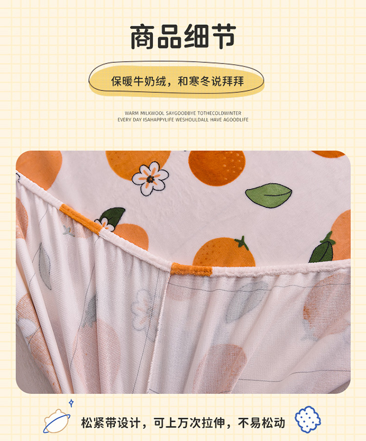 • 91家纺网 家纺一手货源 找家纺 芃成 2022新款加厚双面牛奶绒印花床品系列-单床笠心想事橙