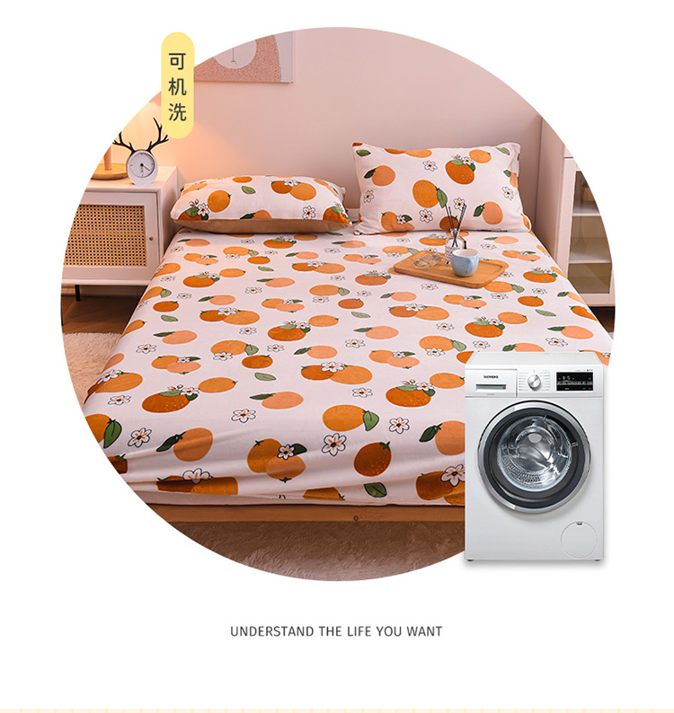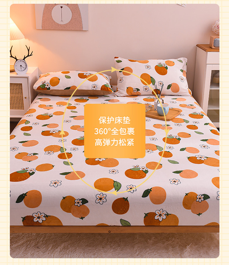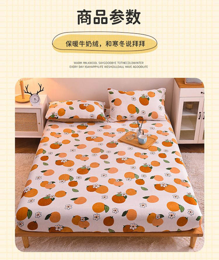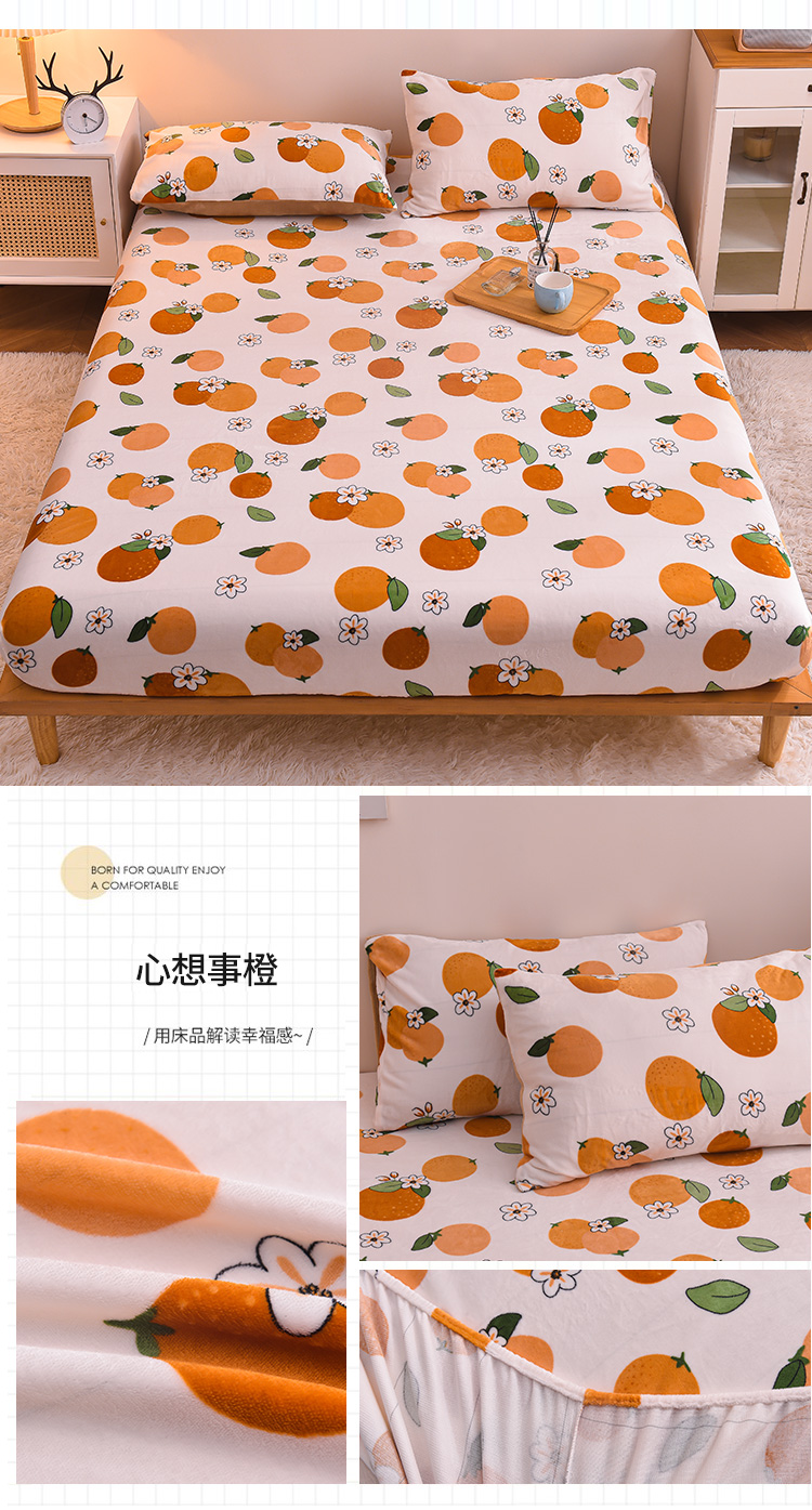 芃成 2022新款加厚双面牛奶绒印花床品系列-单床笠心想事橙