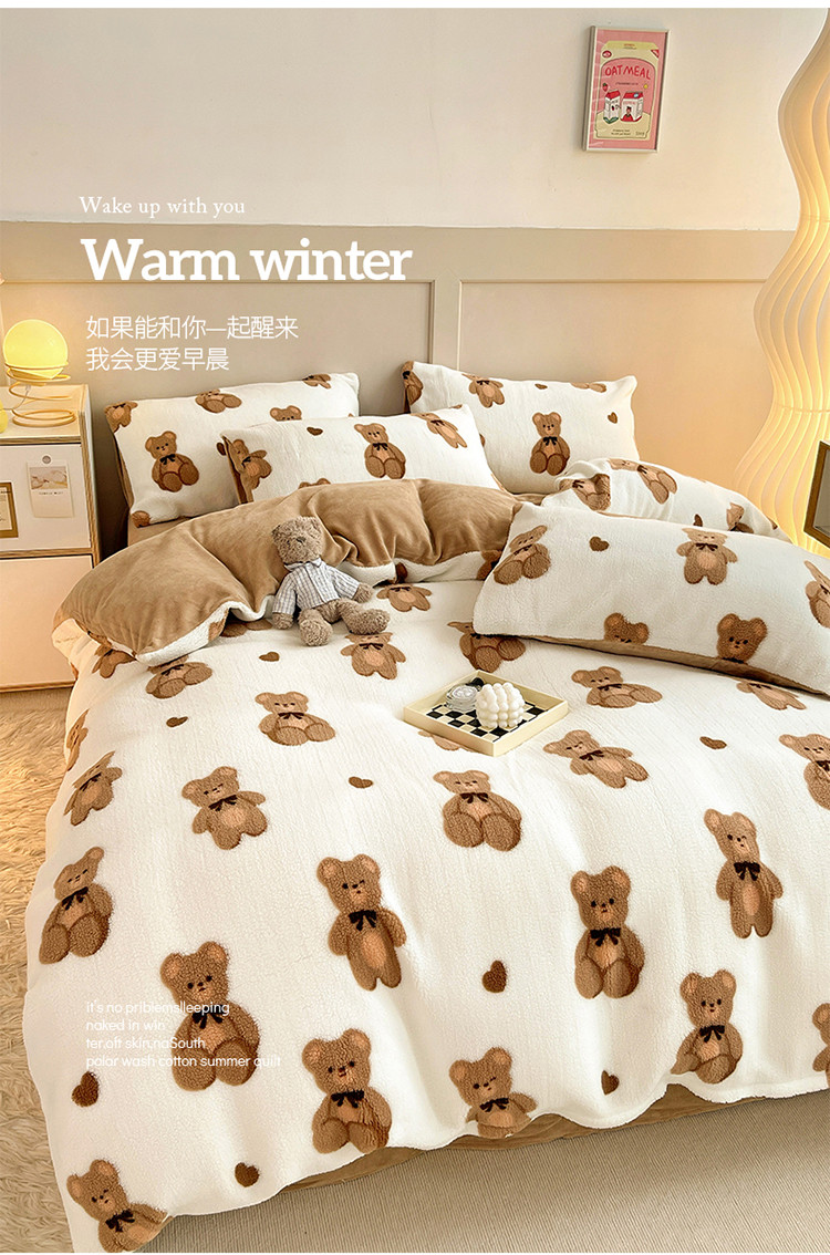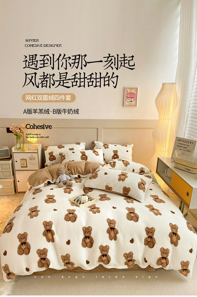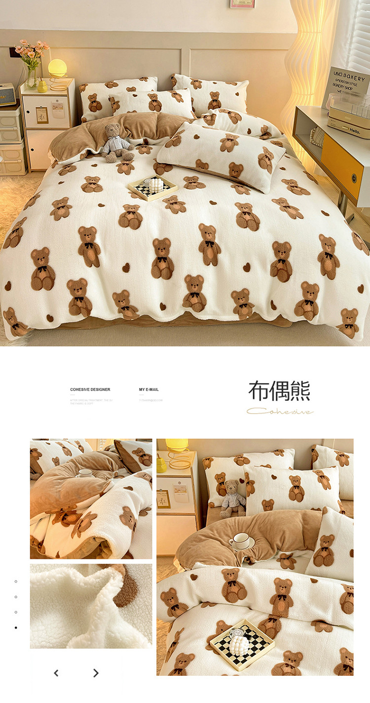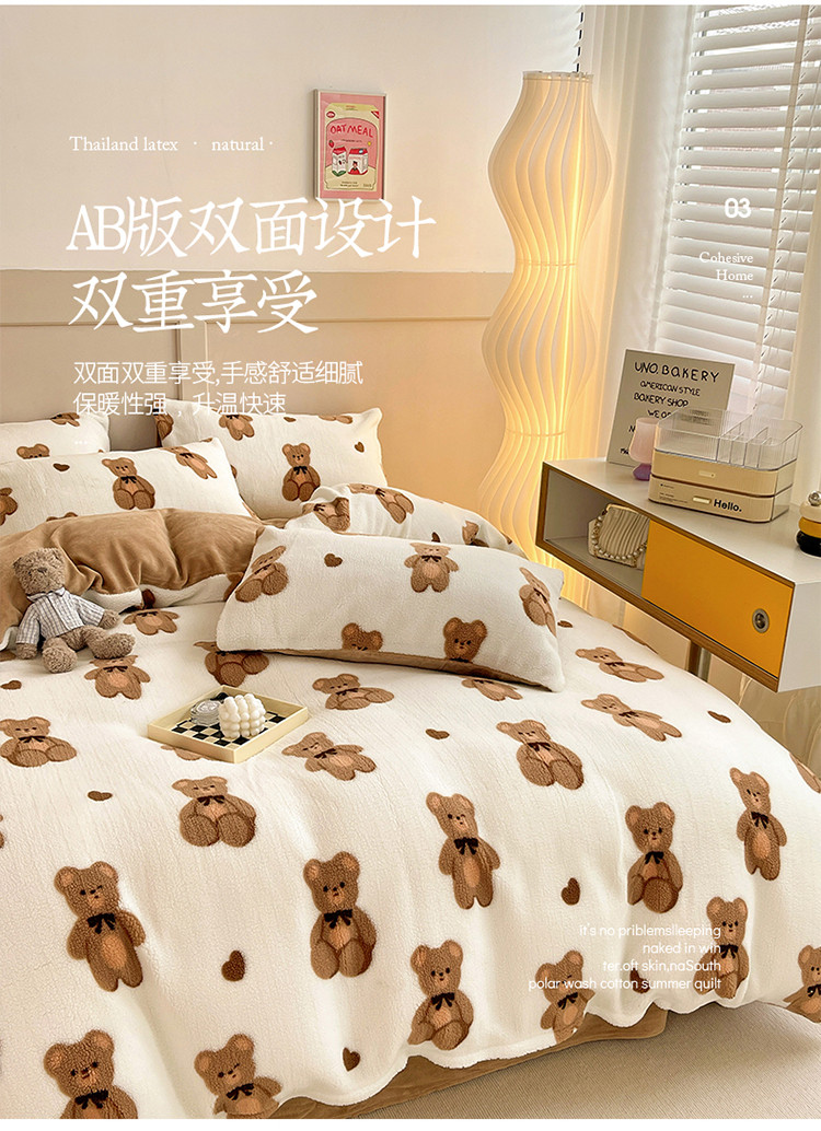 澳梵 2022新款小颗粒美丽绒牛奶绒四件套 布偶熊
