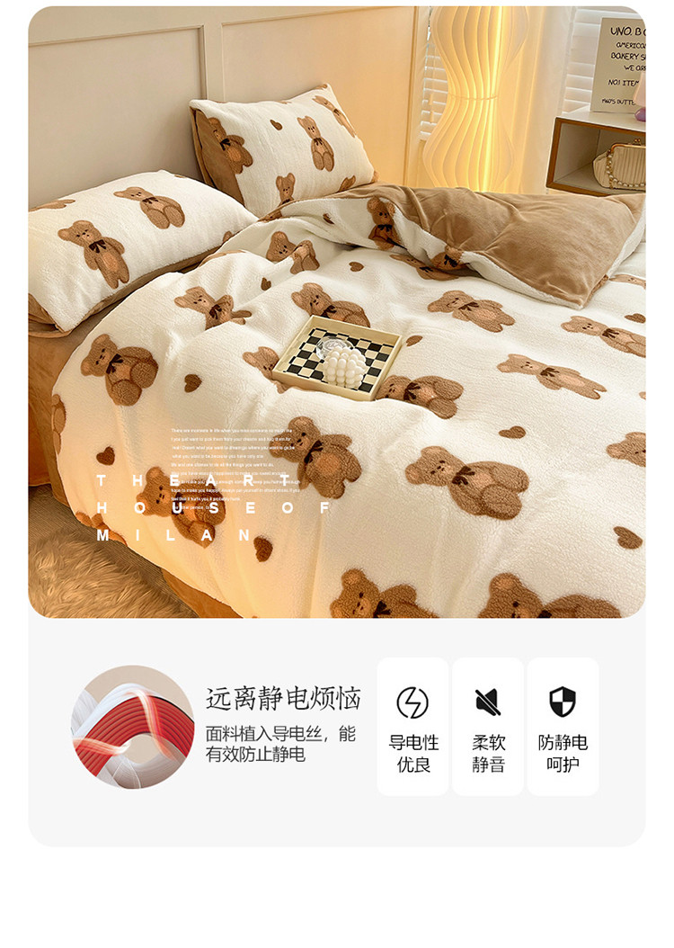 商品名称:澳梵 2022新款小颗粒美丽绒牛奶绒四件套 布偶熊