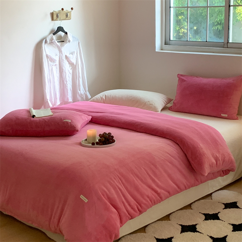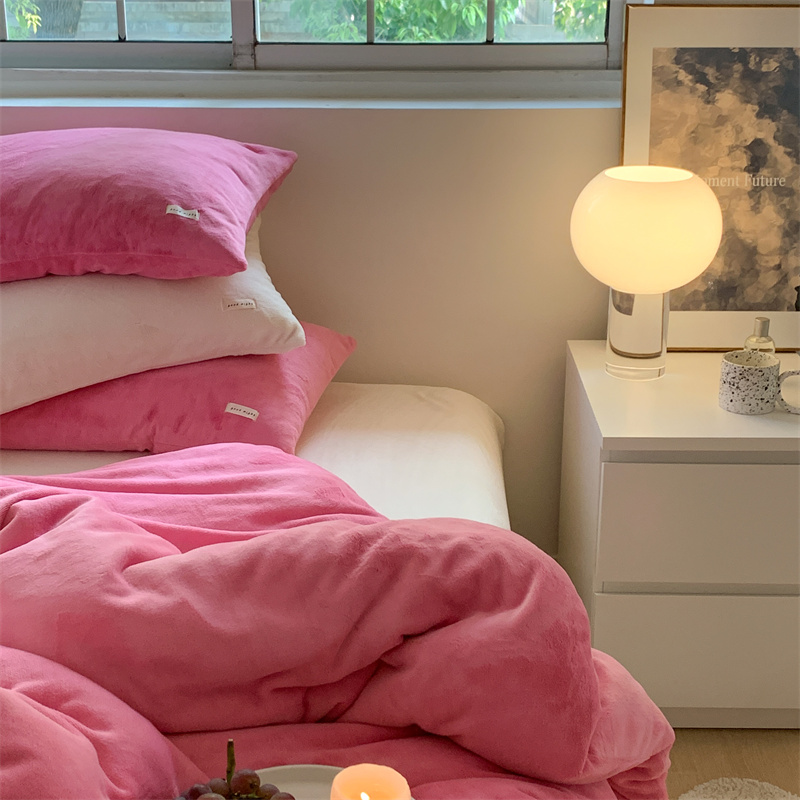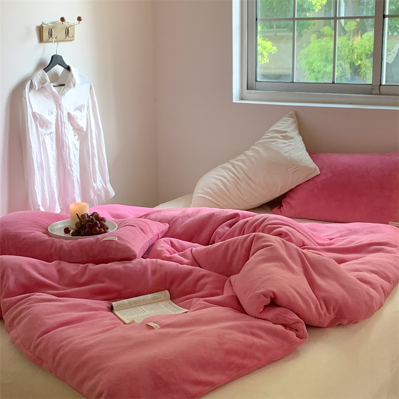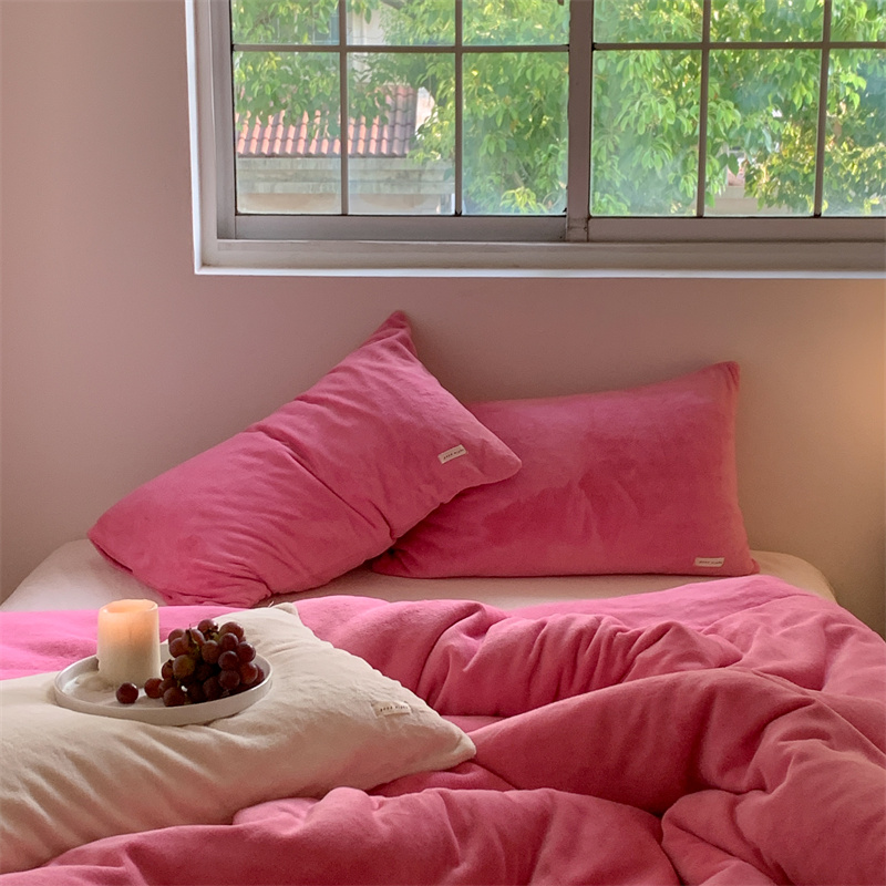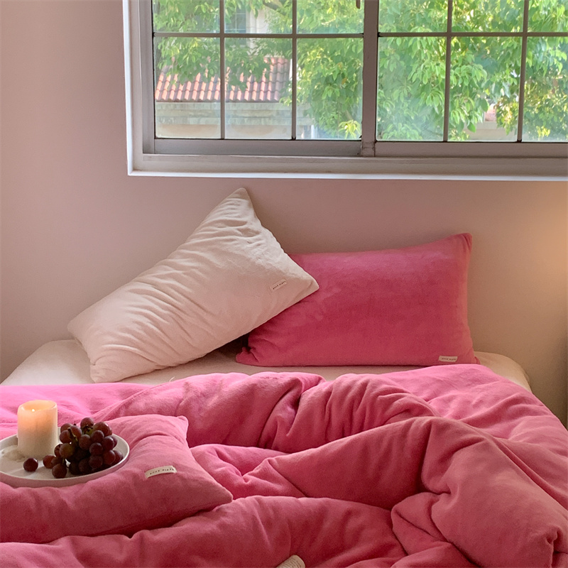 当前位置: 91家纺网 > 商品网购 > 床品套件 > 四件套 > 牛奶绒四件套 > 桃喜 2022新款纯色混搭牛奶绒四件套 蔷薇粉+奶白