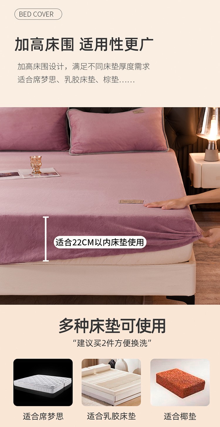• 91家纺网 家纺一手货源 找家纺 518家纺 2025新款220克牛奶绒纯色系列床笠可定制绒床笠单床笠 罗兰紫