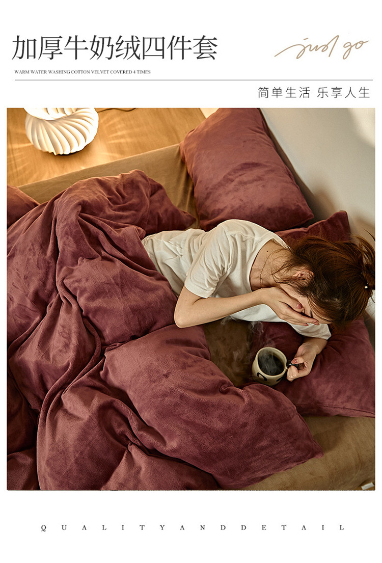 当前位置: 91家纺网 > 商品网购 > 床品套件 > 四件套 > 牛奶绒四件套 > 新款加厚牛奶绒四件套 香槟酒红