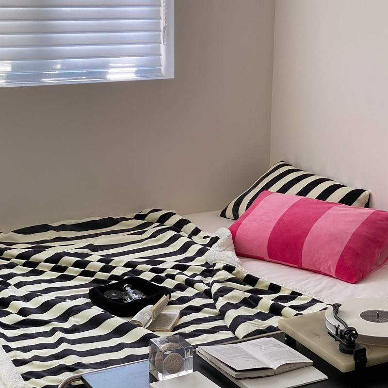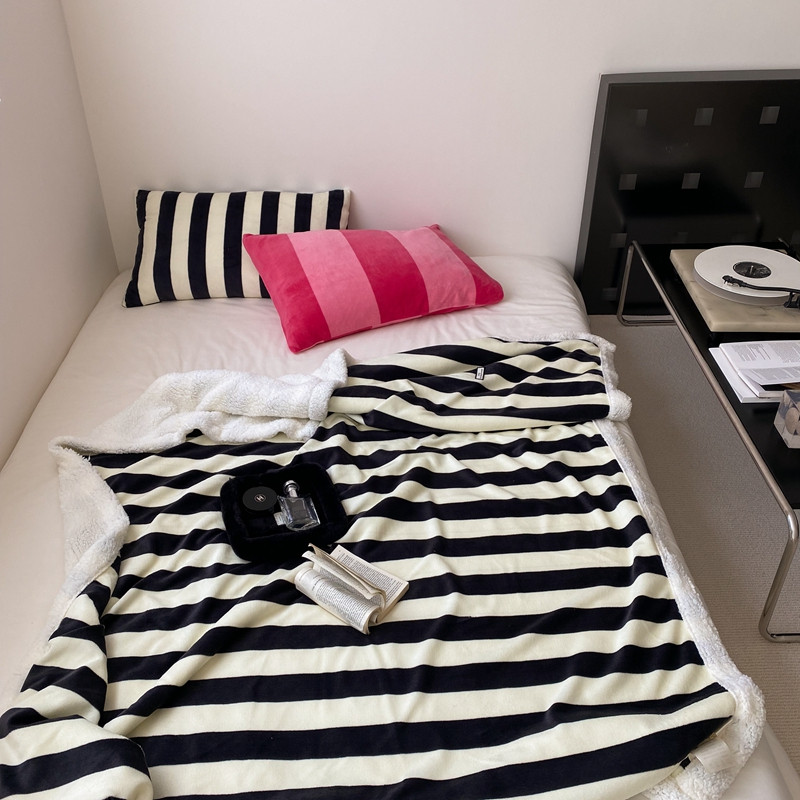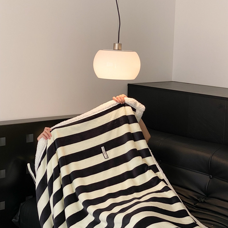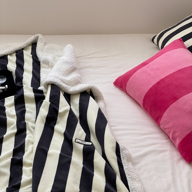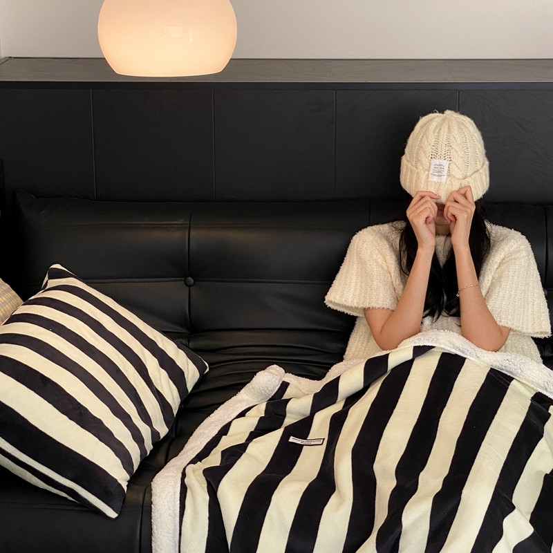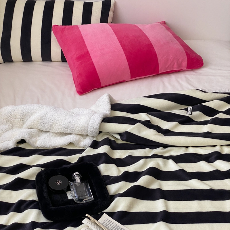 桃喜 2022新款230g牛奶绒羊羔绒条纹毛毯 黑白奥利奥