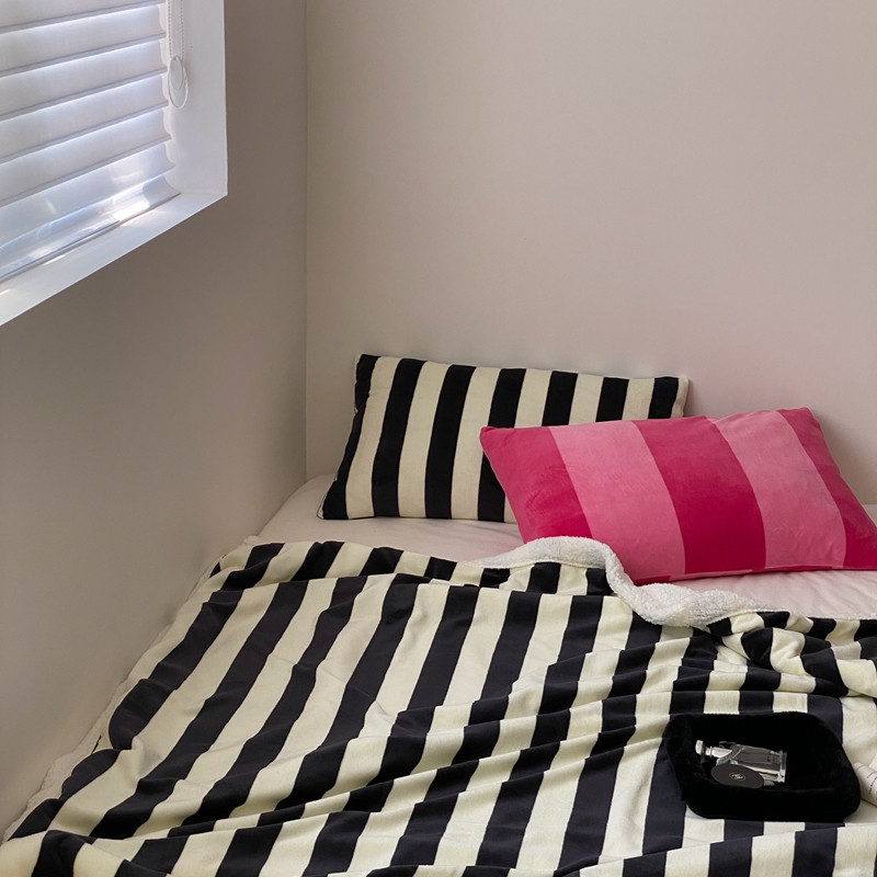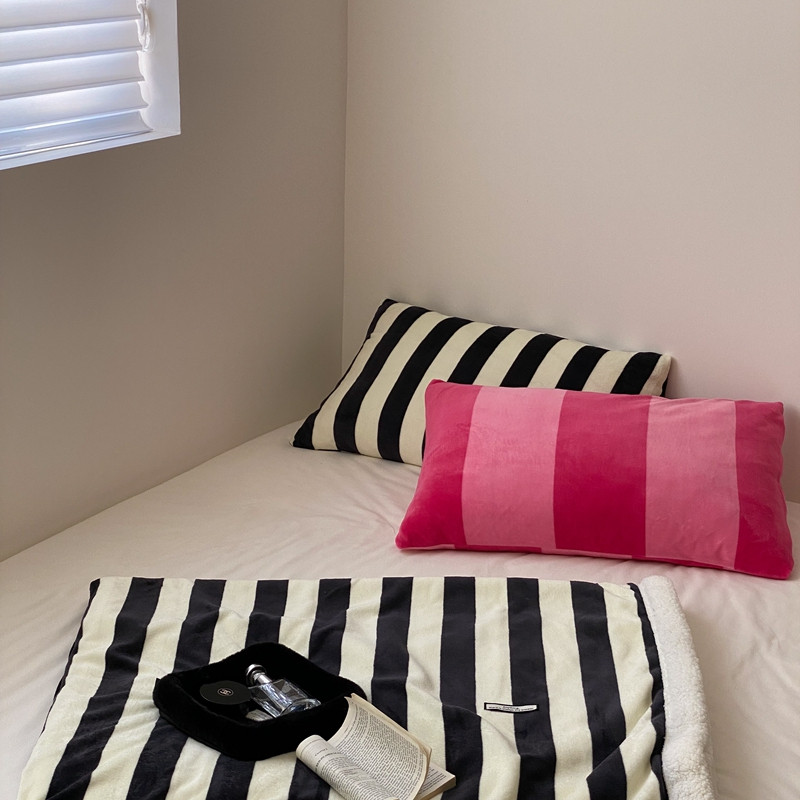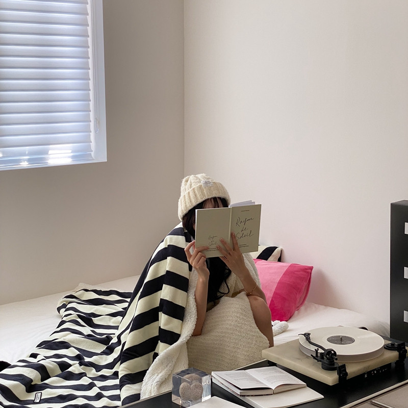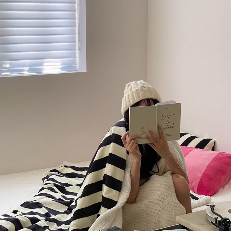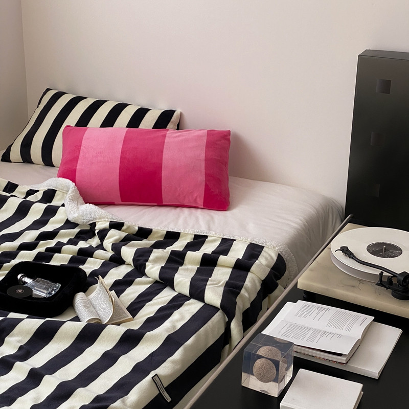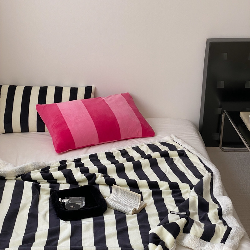 桃喜 2022新款230g牛奶绒羊羔绒条纹毛毯 黑白奥利奥