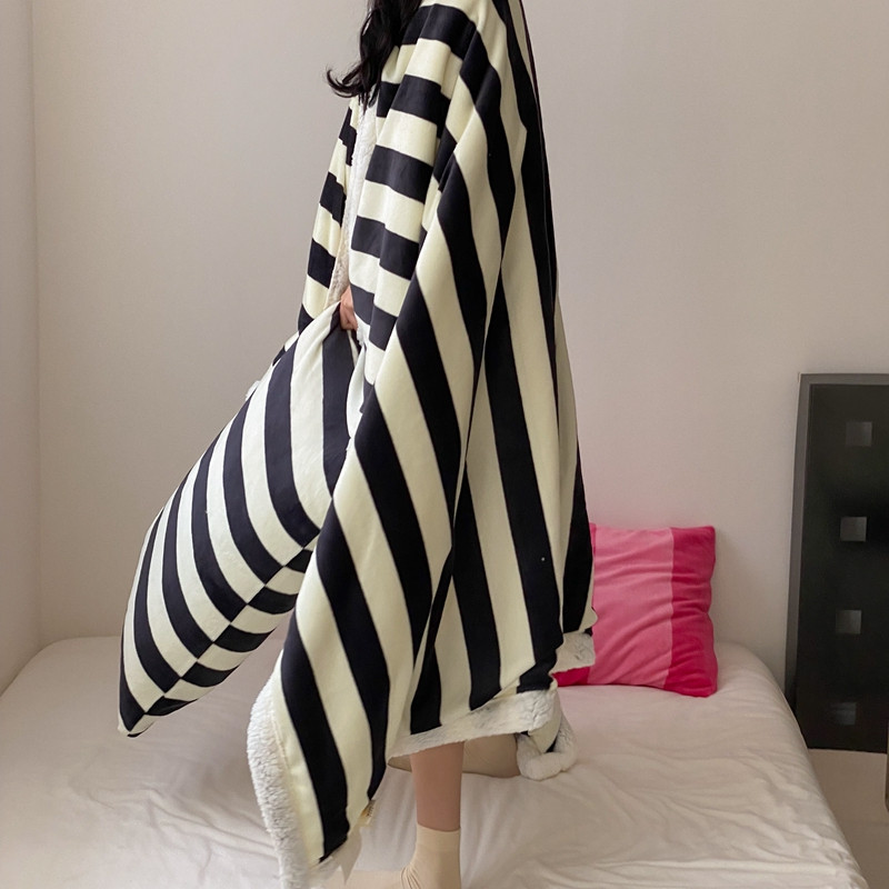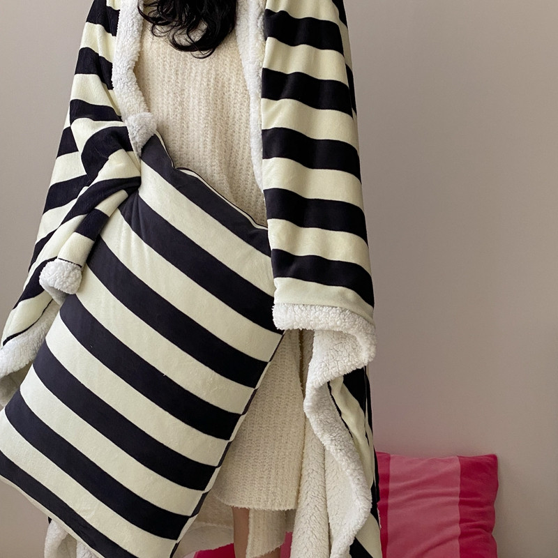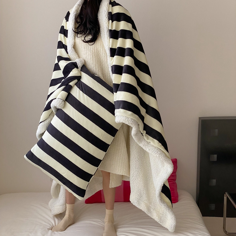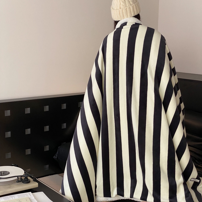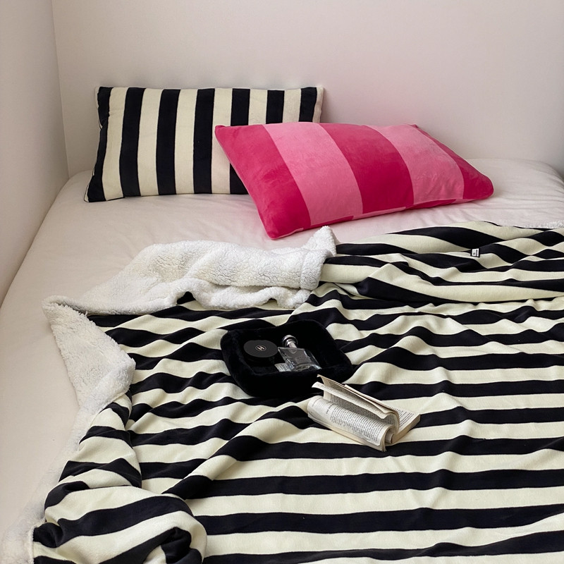 商品名称:桃喜 2022新款230g牛奶绒羊羔绒条纹毛毯 黑白奥利奥