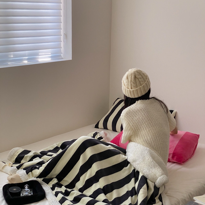 (总)桃喜 2024新款牛奶绒羊羔绒条纹系列盖绒毛毯午休毯多功能毛毯-场景二,多巴胺彩条,蓝咖条纹,栗子粉条纹,美式复古红蓝条,美式复古黄蓝条
