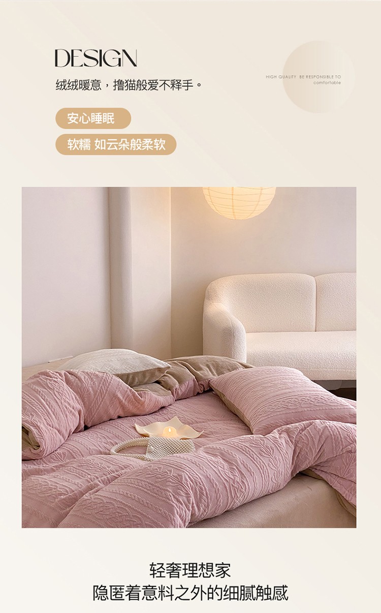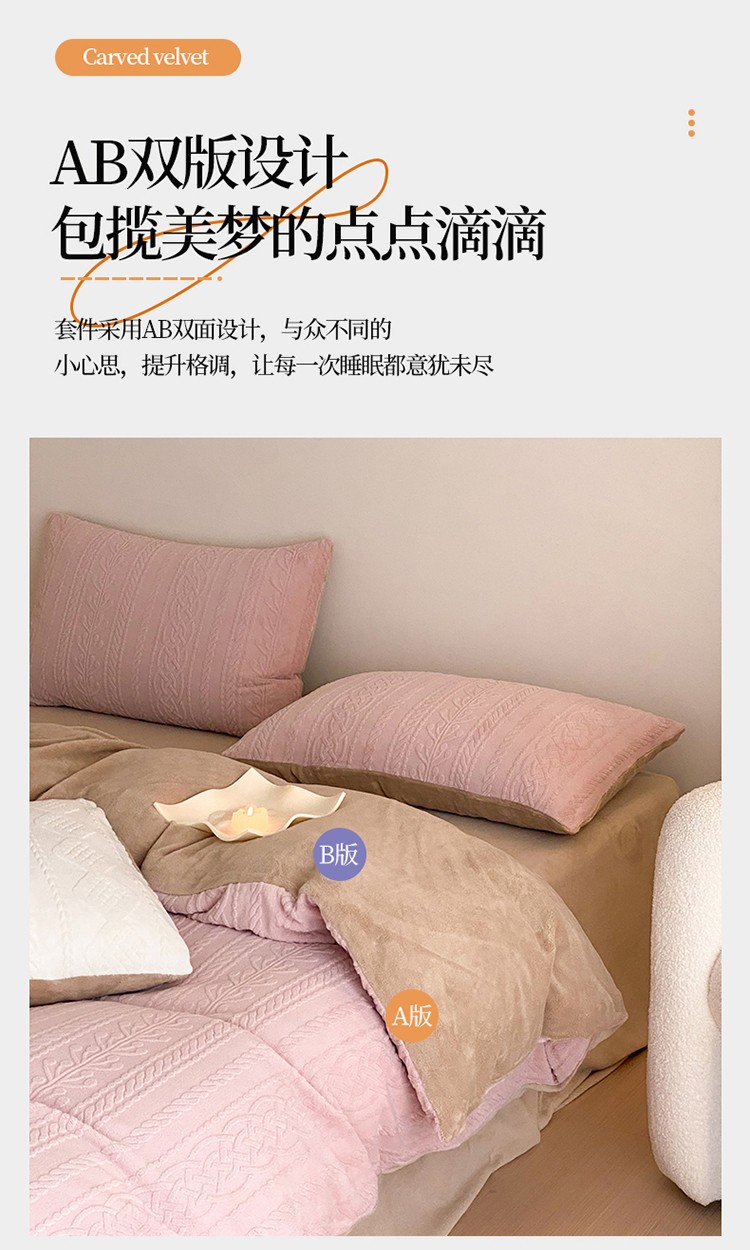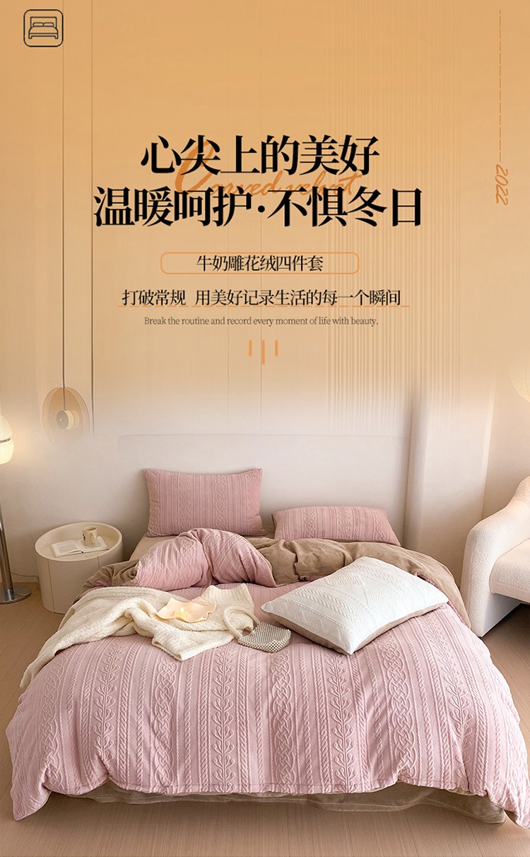 (总)梦享生活 2022新款加厚牛奶雕花绒四件套