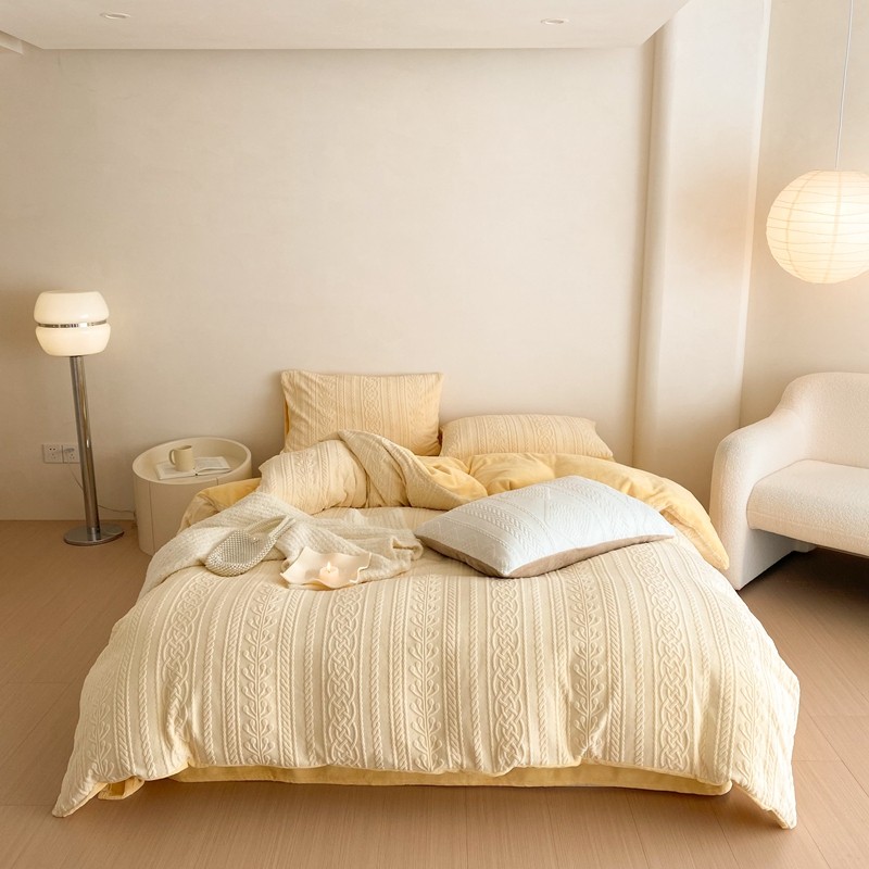 (总)梦享生活 2022新款牛奶雕花绒四件套,花枝-奶黄,花枝-灰,花枝-粉,菱形格-绿,菱形格-白