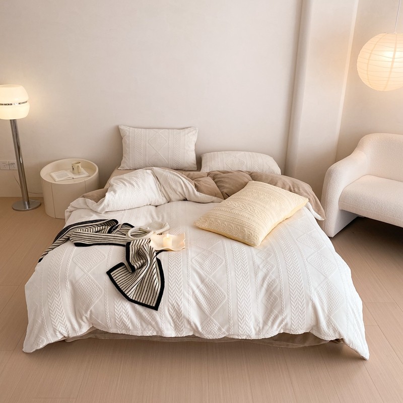 (总)梦享生活 2022新款40支华夫格提花四件套,水蓝奶茶,焦糖双拼,蜂蜜黄奶茶,盐白双拼