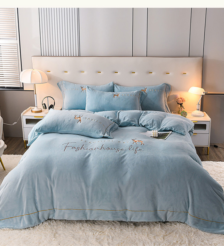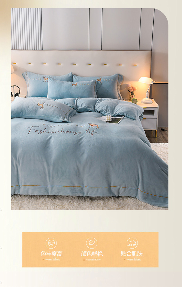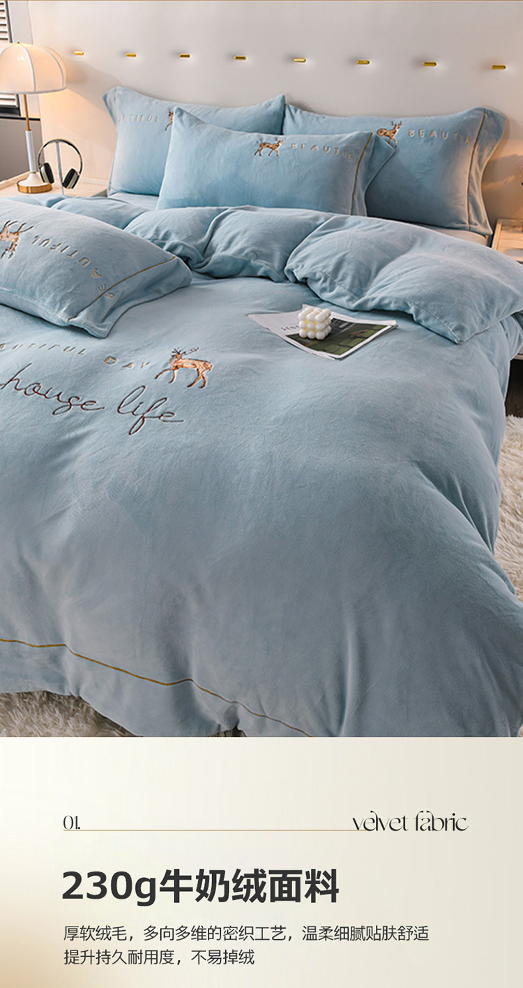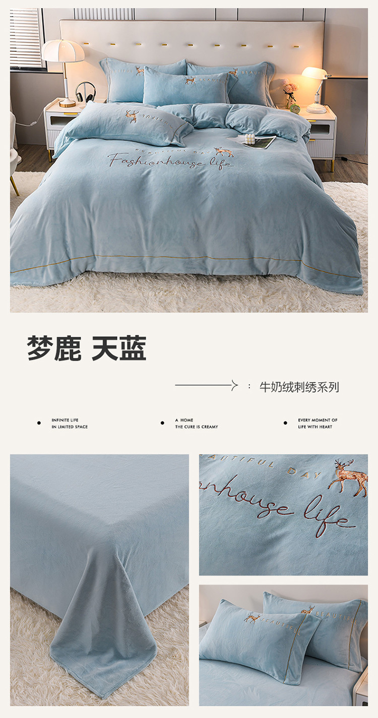 商品名称:金麦 2022新款230克全消光A类牛奶绒四件套-梦鹿 天蓝