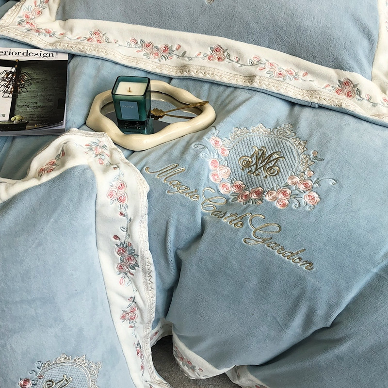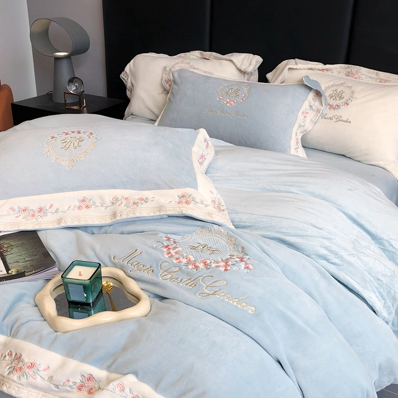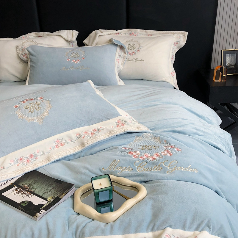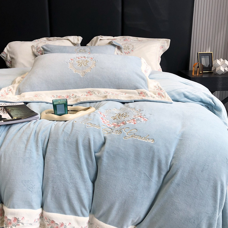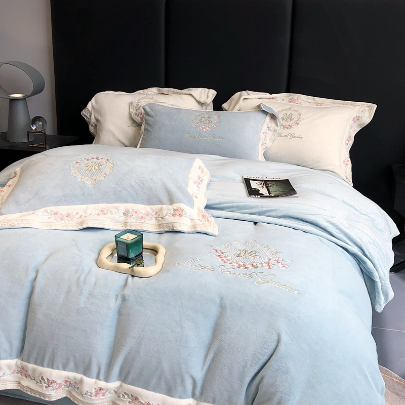 商品名称:馨蕊家居 2022新款轻奢煦暖绒梦露系列四件套 梦露-湖水蓝